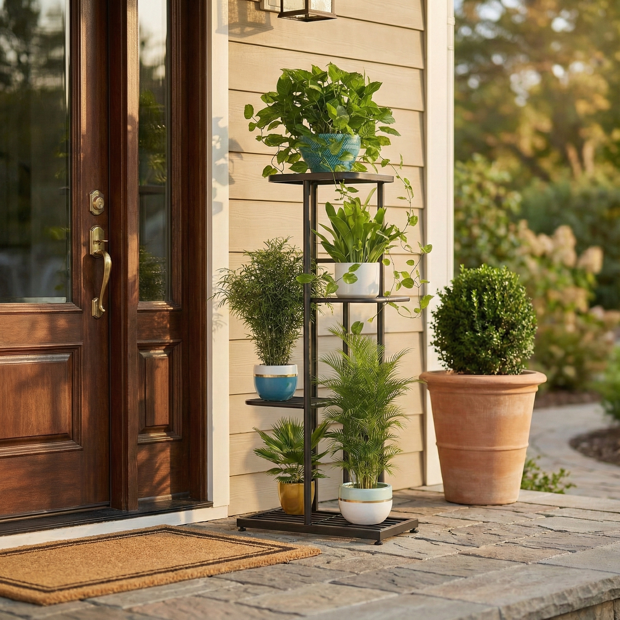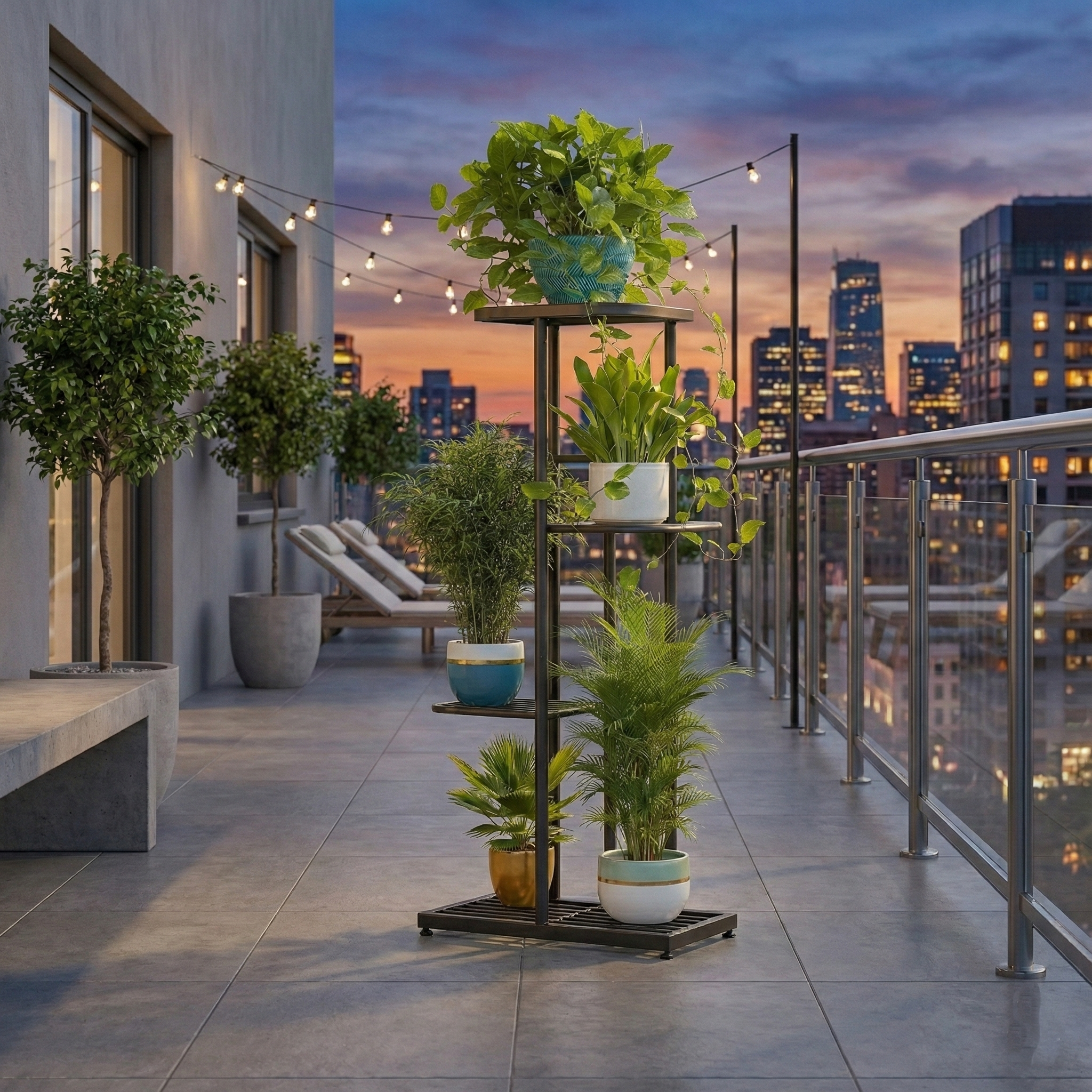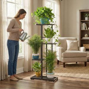 Mostrá tus plantas favoritas en este elegante estante de hierro de 4 niveles, perfecto para cualquier ambiente.