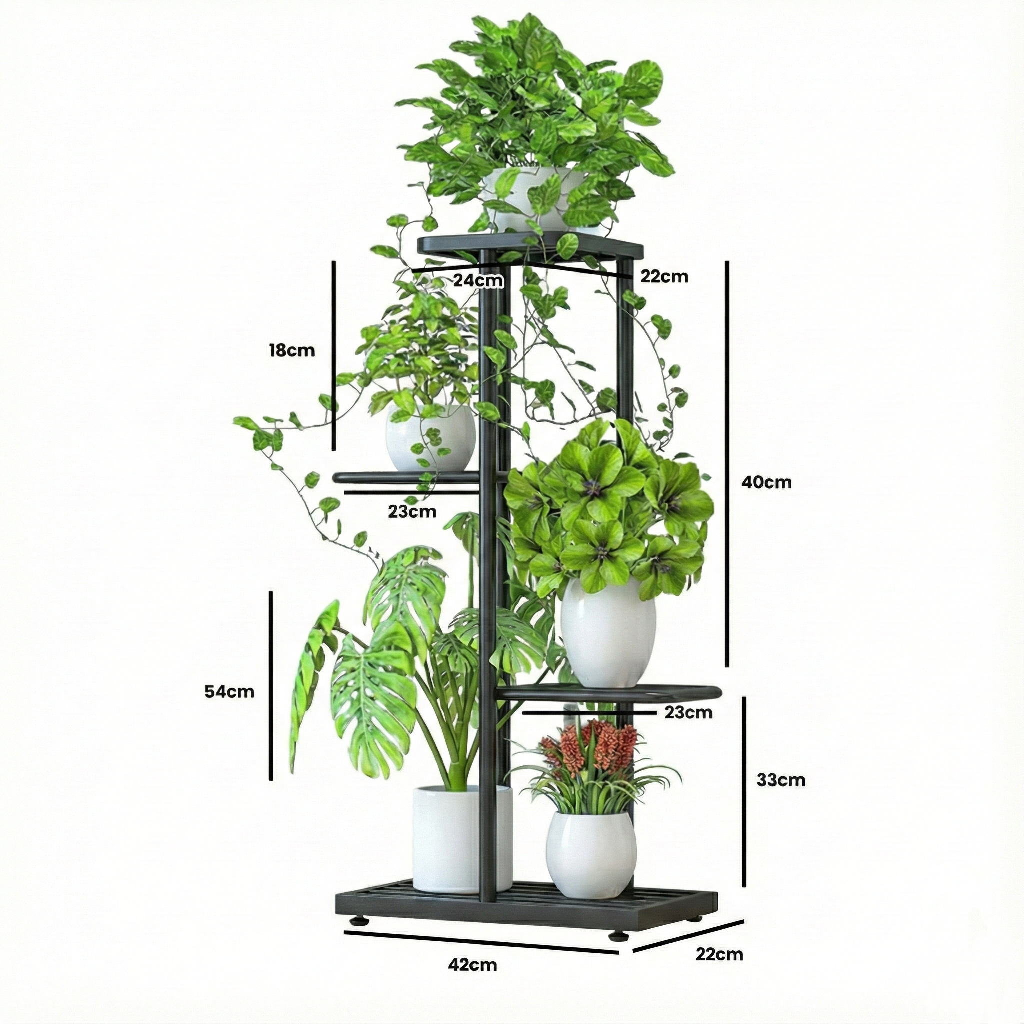 Mostrá tus plantas favoritas en este elegante estante de hierro de 4 niveles, perfecto para cualquier ambiente.