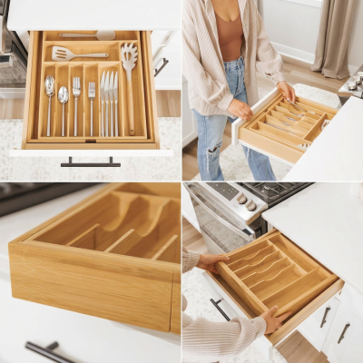 Organizador extensible de bambú, perfecto para cubiertos, útiles de cocina o incluso material escolar.