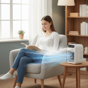 Con este ventilador portátil con pulverizador, mantené tu espacio fresco y agradable en todo momento.