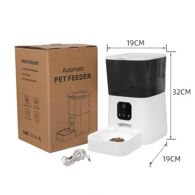 Material: ABS Capacidad: 6L (6kg) Potencia: 5W Cargador: 5V 1A o pilas AA Cámara: 1080p con micrófono incorporado Usos: Automatizá la alimentación, vigilá y hablale a tu mascota desde el comedero Medidas: 19cm x 18cm x 33cm