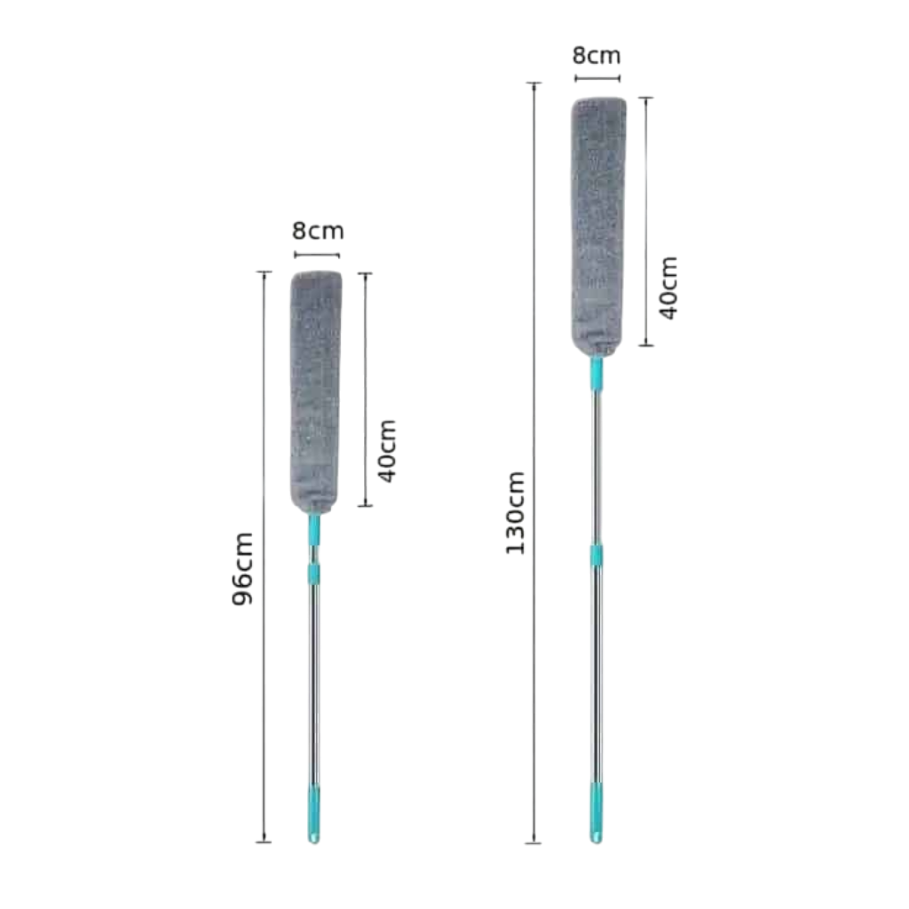 Material: Acero inoxidable y paño de microfibraUsos: Mantén tu hogar impecable con este plumero flexibleTamaño del paño: 40 cm x 8 cmPalo: Retraído 96 cm / Extendido 130 cm