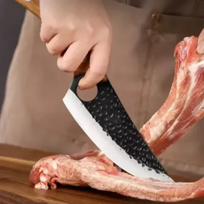 Eleva tus habilidades culinarias con este cuchillo de cocina curvo profesional, forjado a mano con acero inoxidable de alta calidad.
