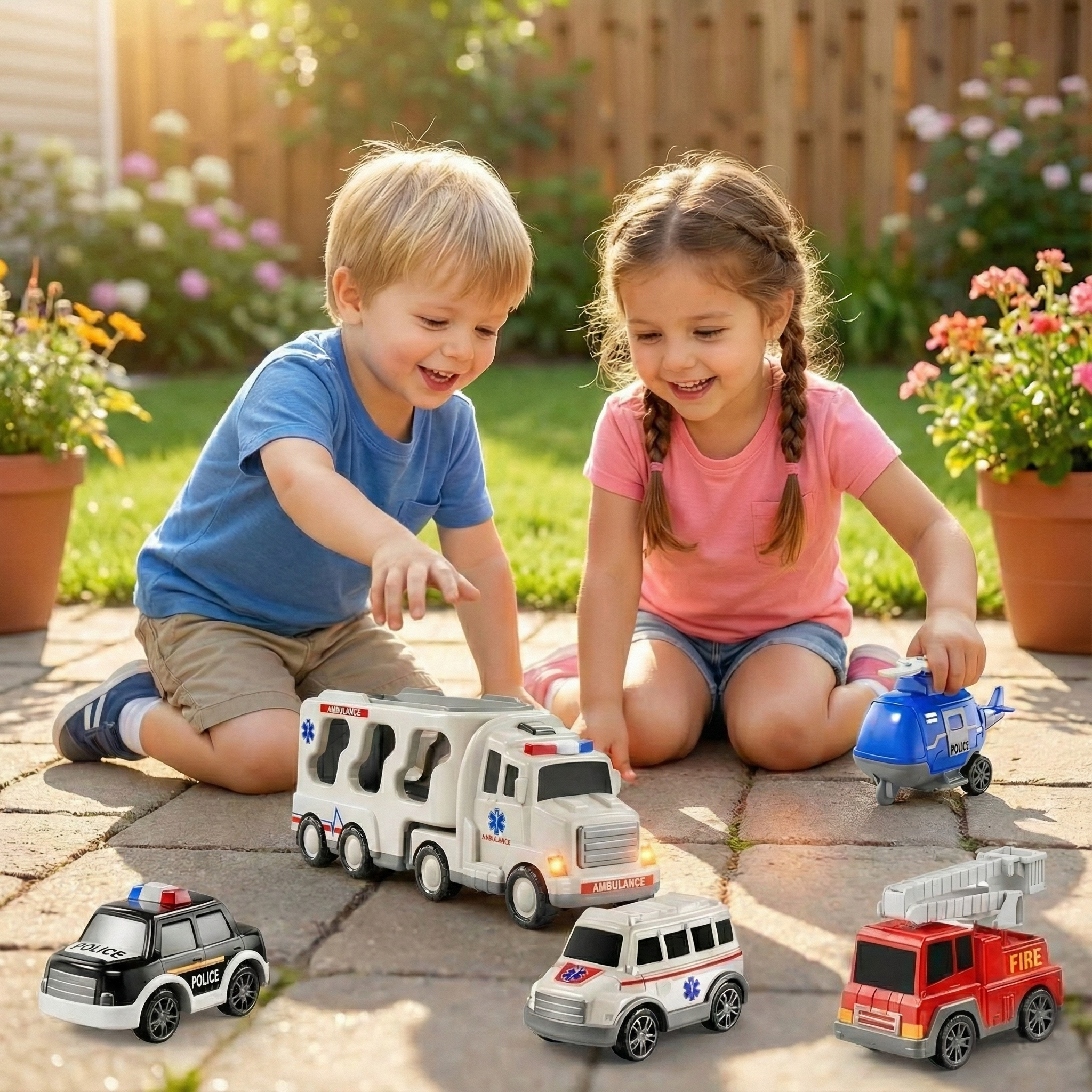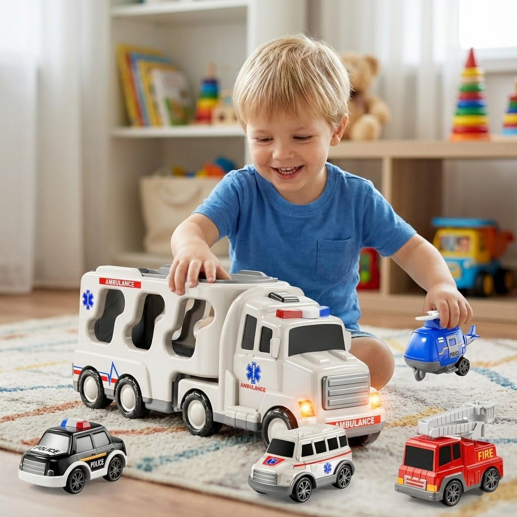 Sku: 1786-0Camión Ambulancias Transportador de Coches para Niños