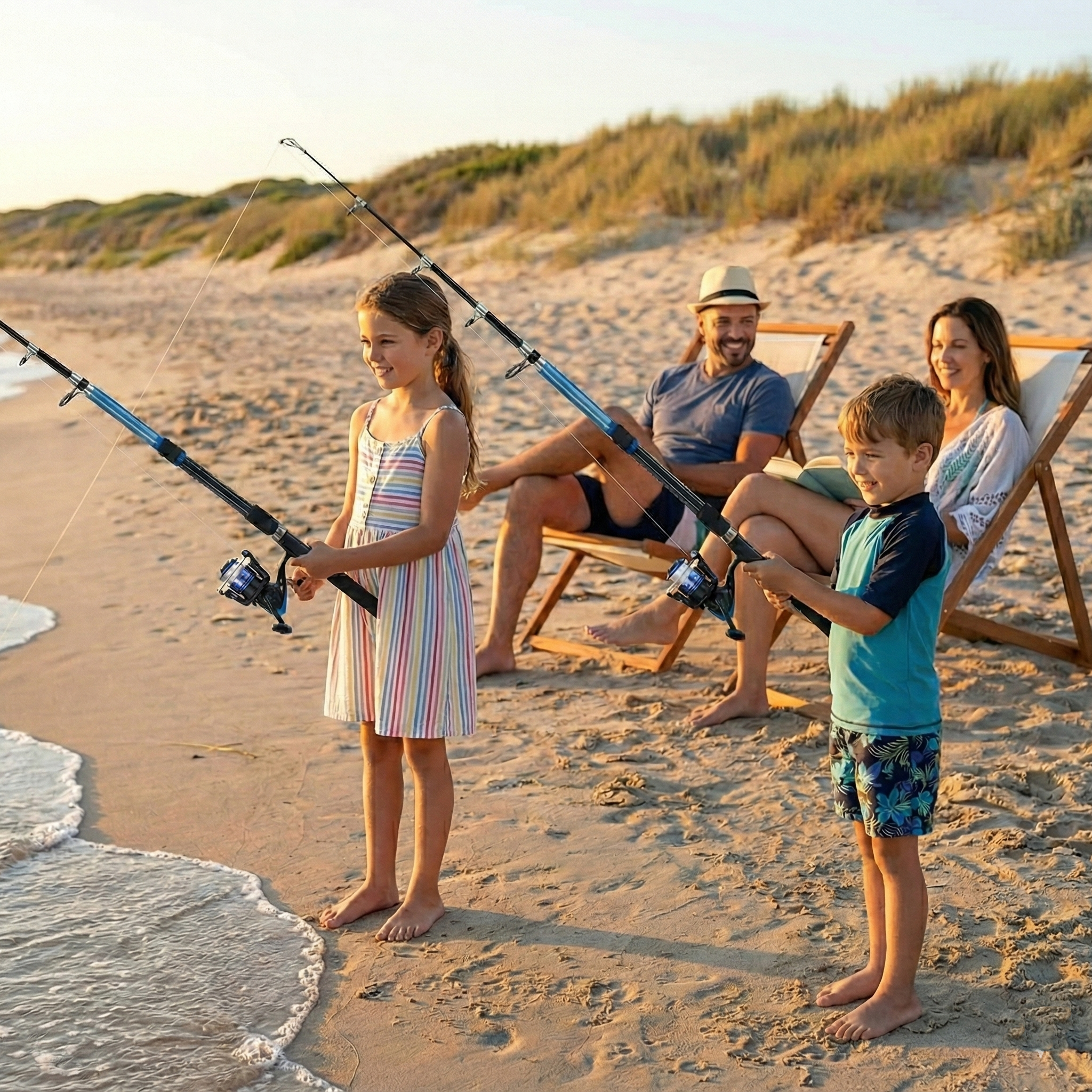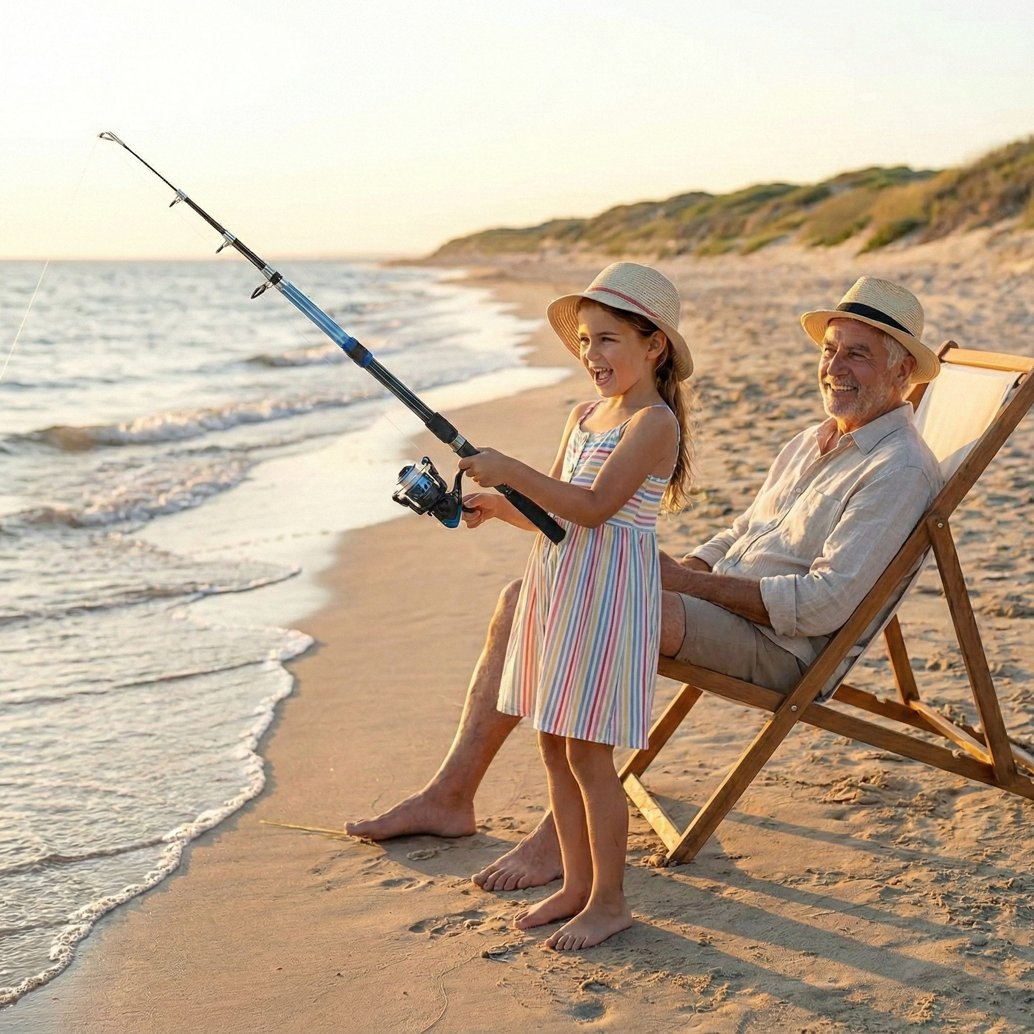 Un kit completo pensado para que los más chicos disfruten de la pesca con una caña telescópica liviana y fácil de manejar.