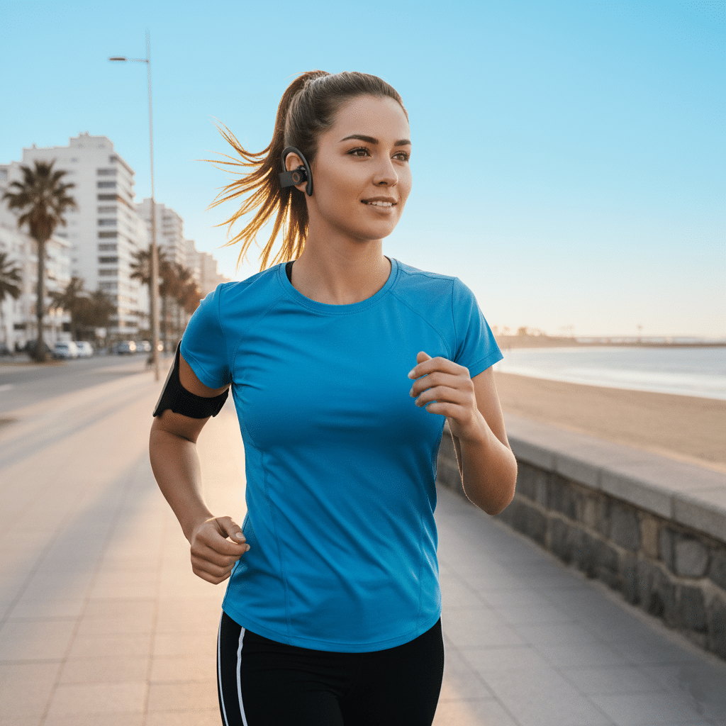 Auriculares Bluetooth deportivos con carga rápida y pantalla. Sonido potente donde vayas.