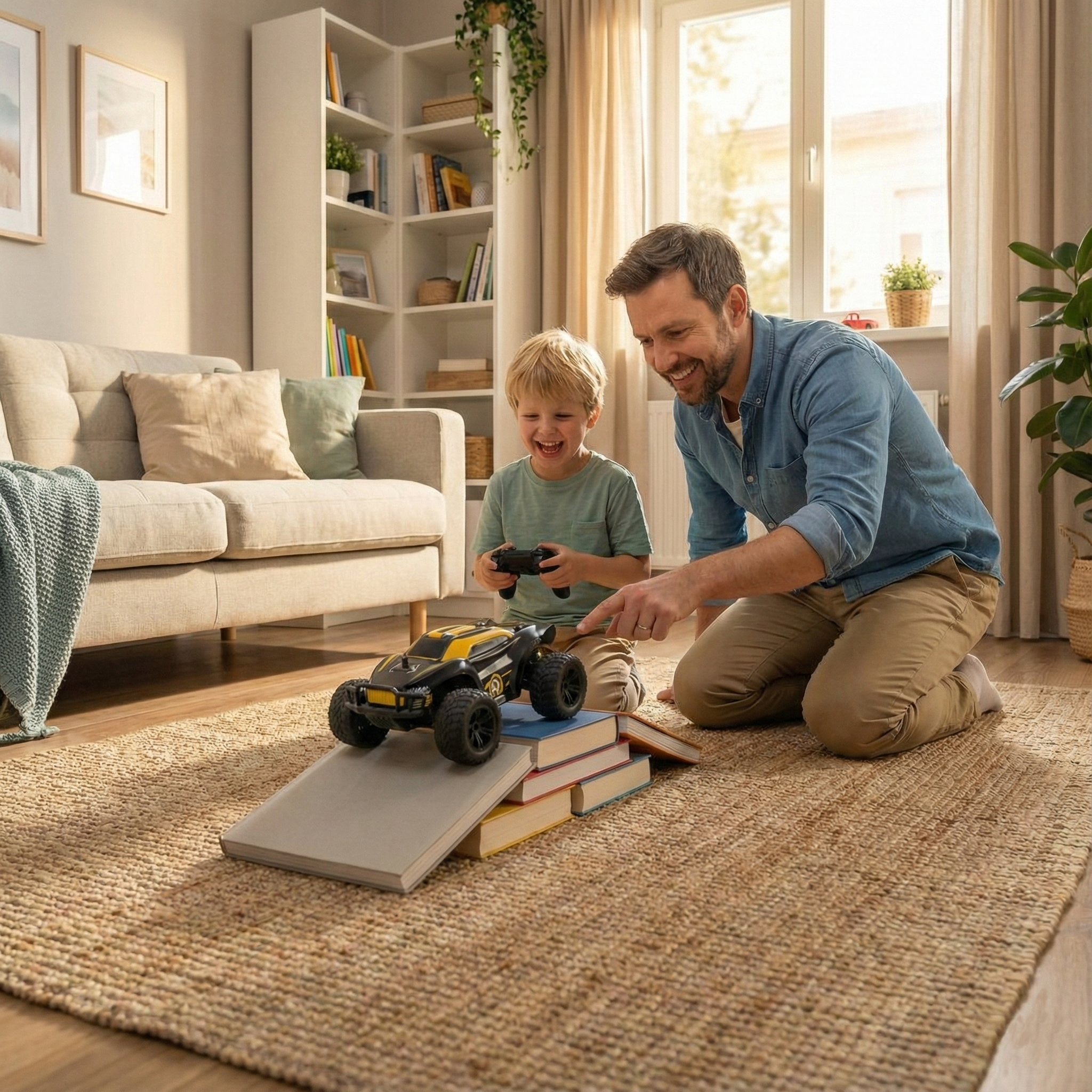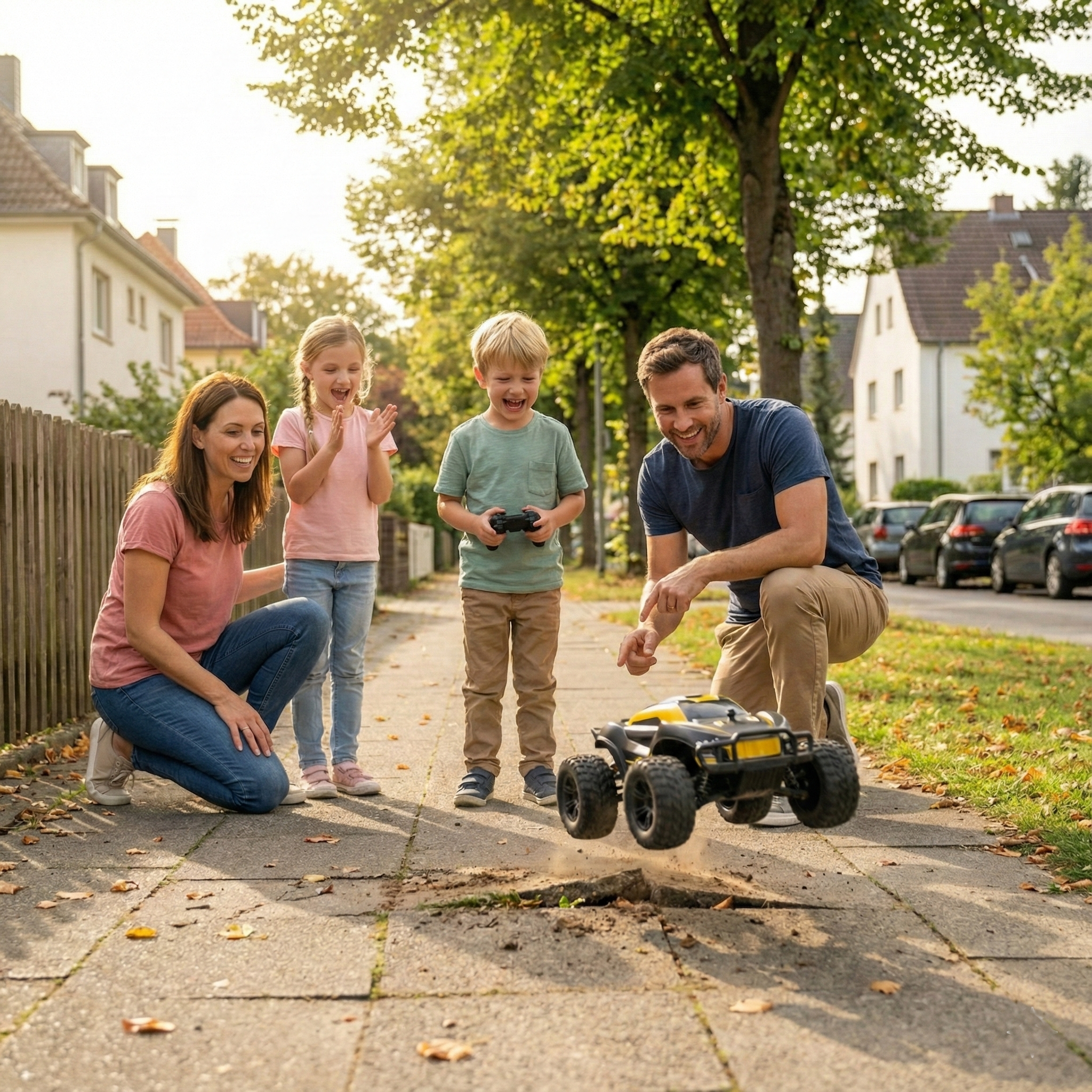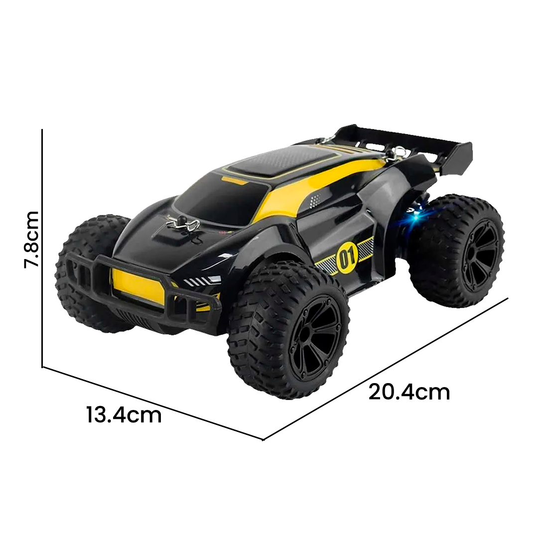 Esta camioneta a control remoto está diseñada para dominar cualquier terreno con facilidad y diversión.