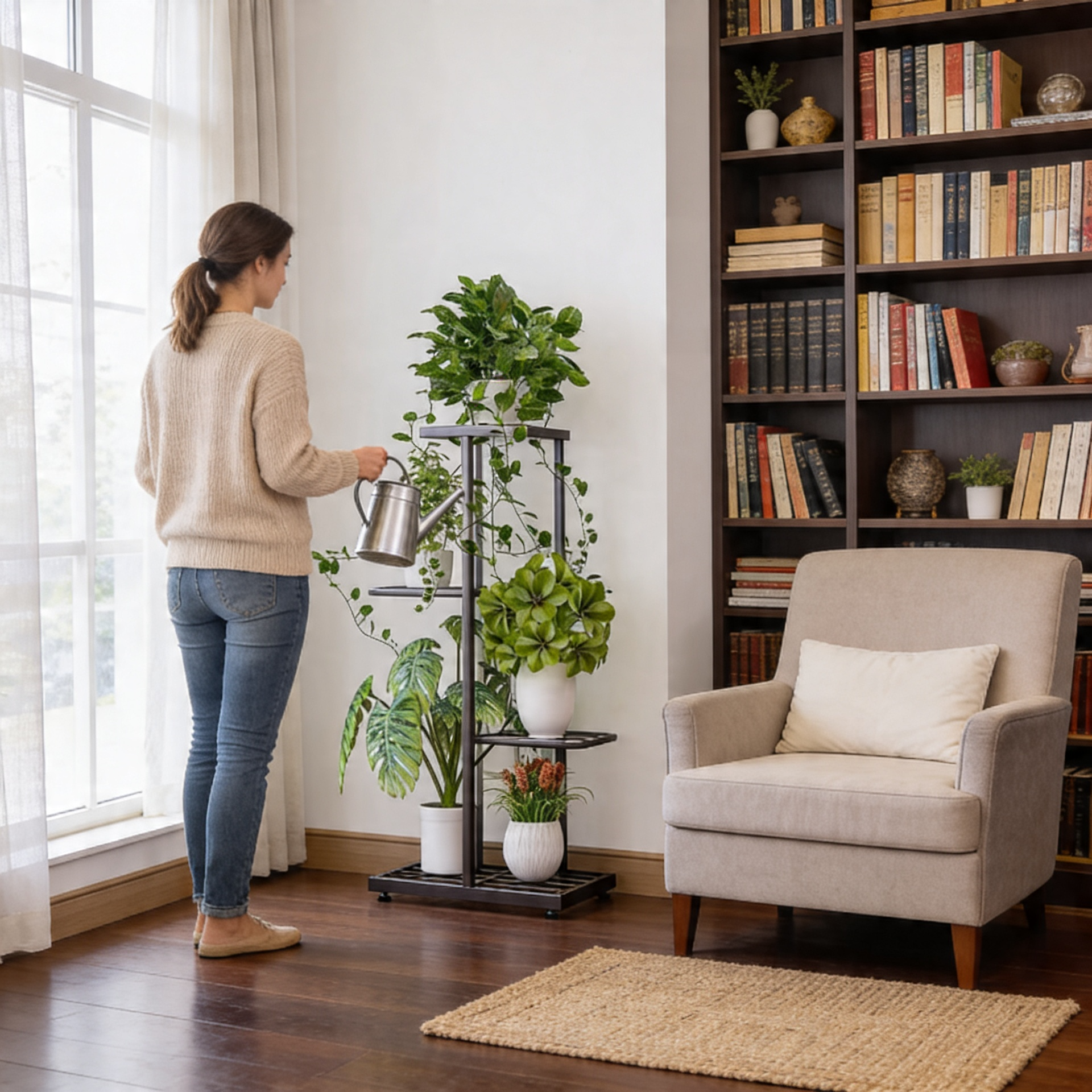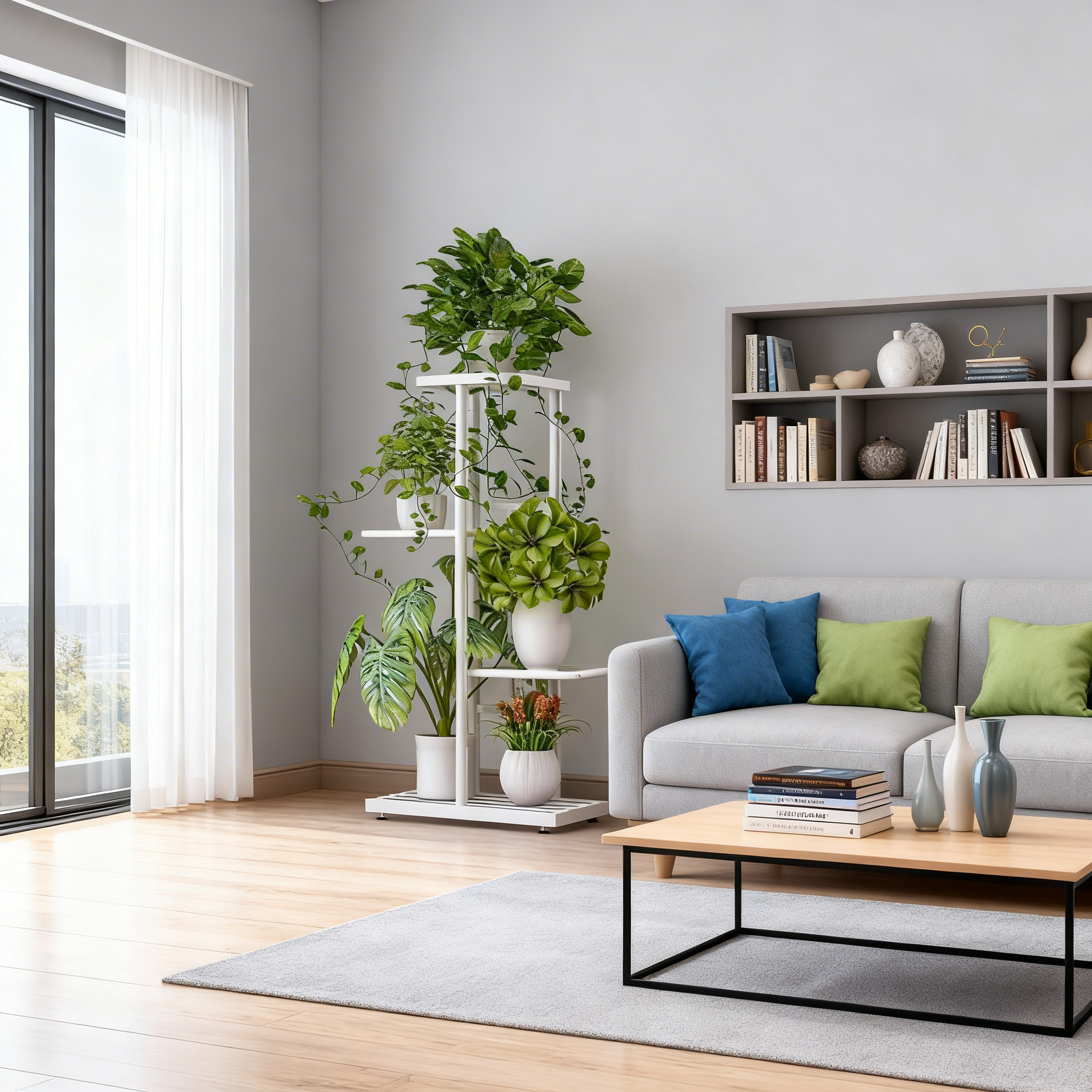 Mostrá tus plantas favoritas en este elegante estante de hierro de 4 niveles, perfecto para cualquier ambiente.