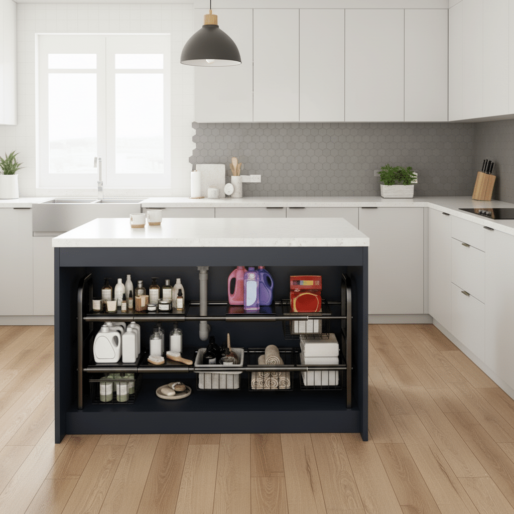 Aprovechá al máximo el espacio bajo la pileta con este estante amplio y funcional.