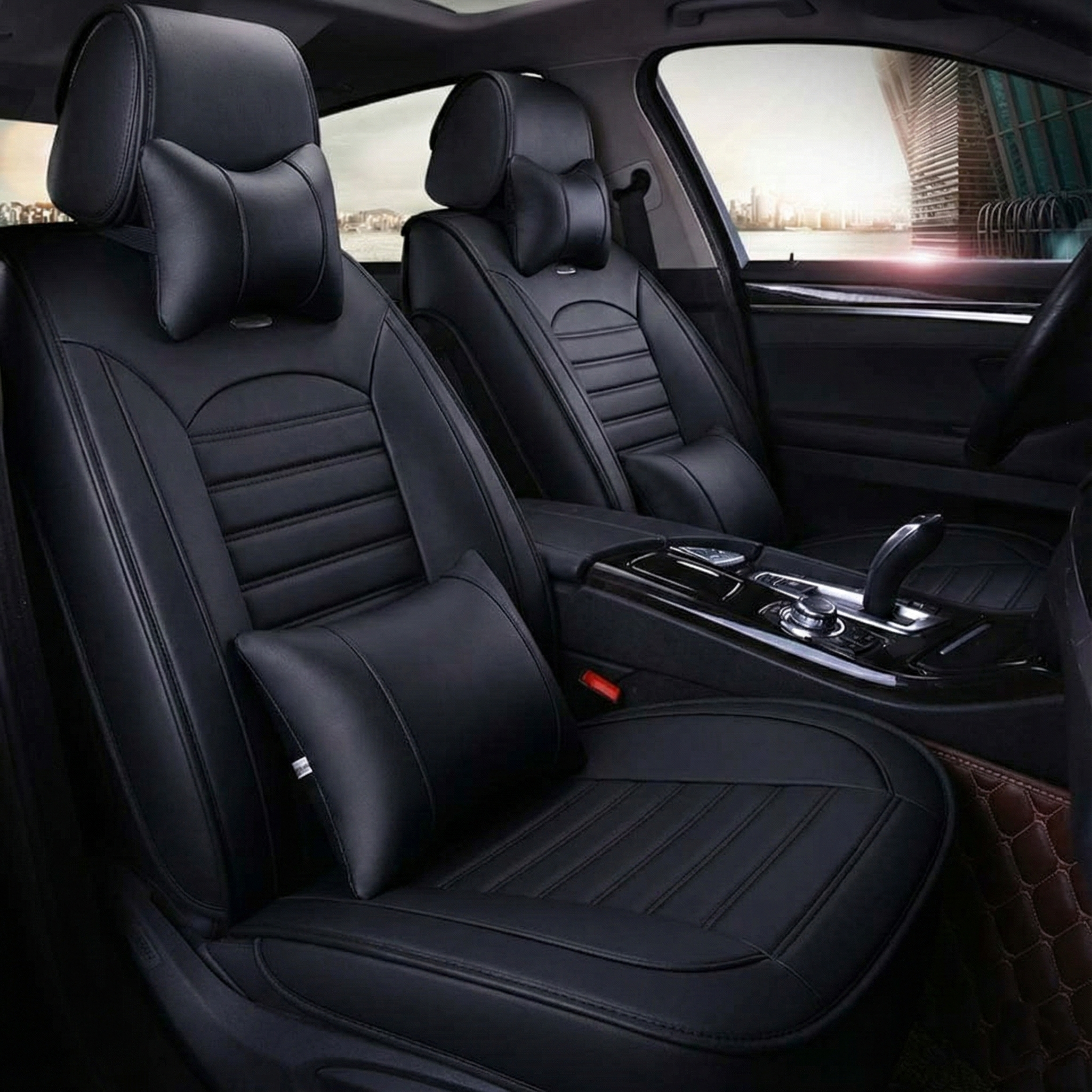 Juego completo de fundas cubre asientos universales, ideal para renovar el interior del vehículo y proteger los asientos originales.