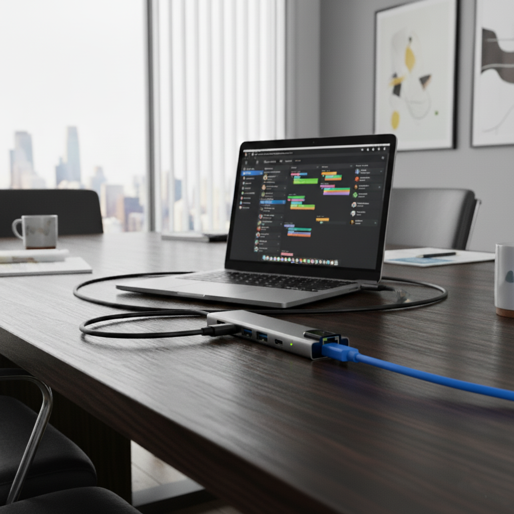 Conectá pantallas, redes, periféricos y más con sus 8 puertos de alta velocidad y rendimiento garantizado.