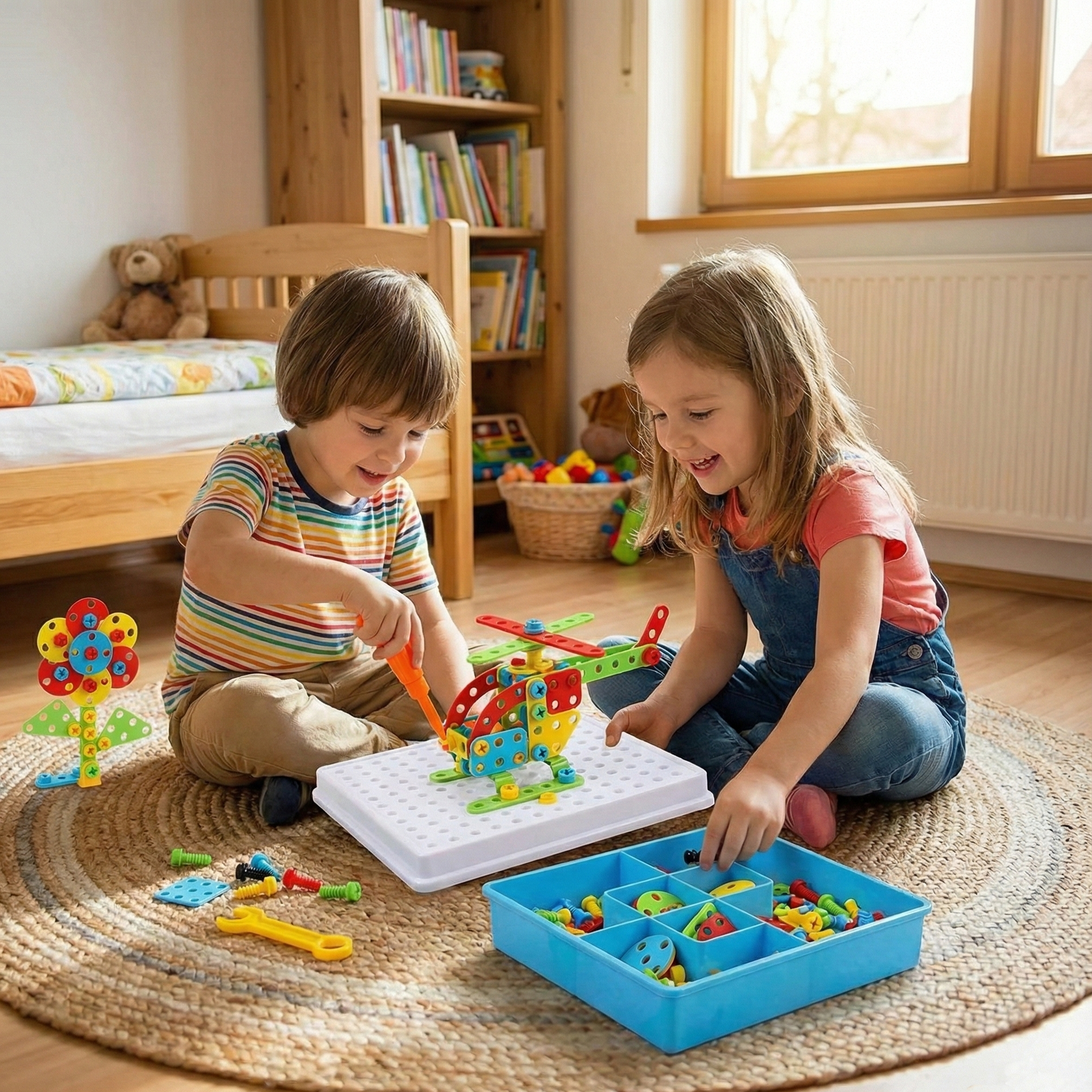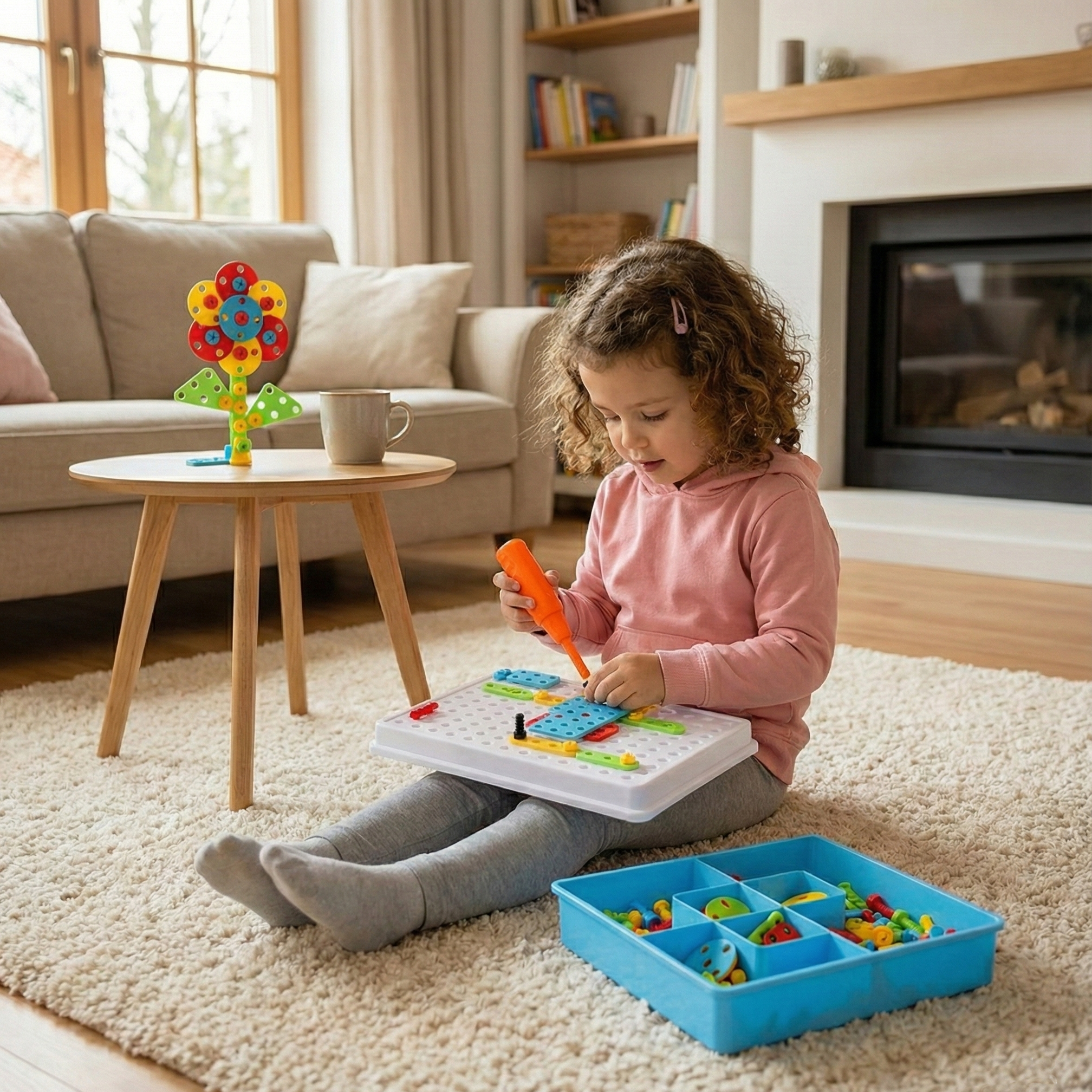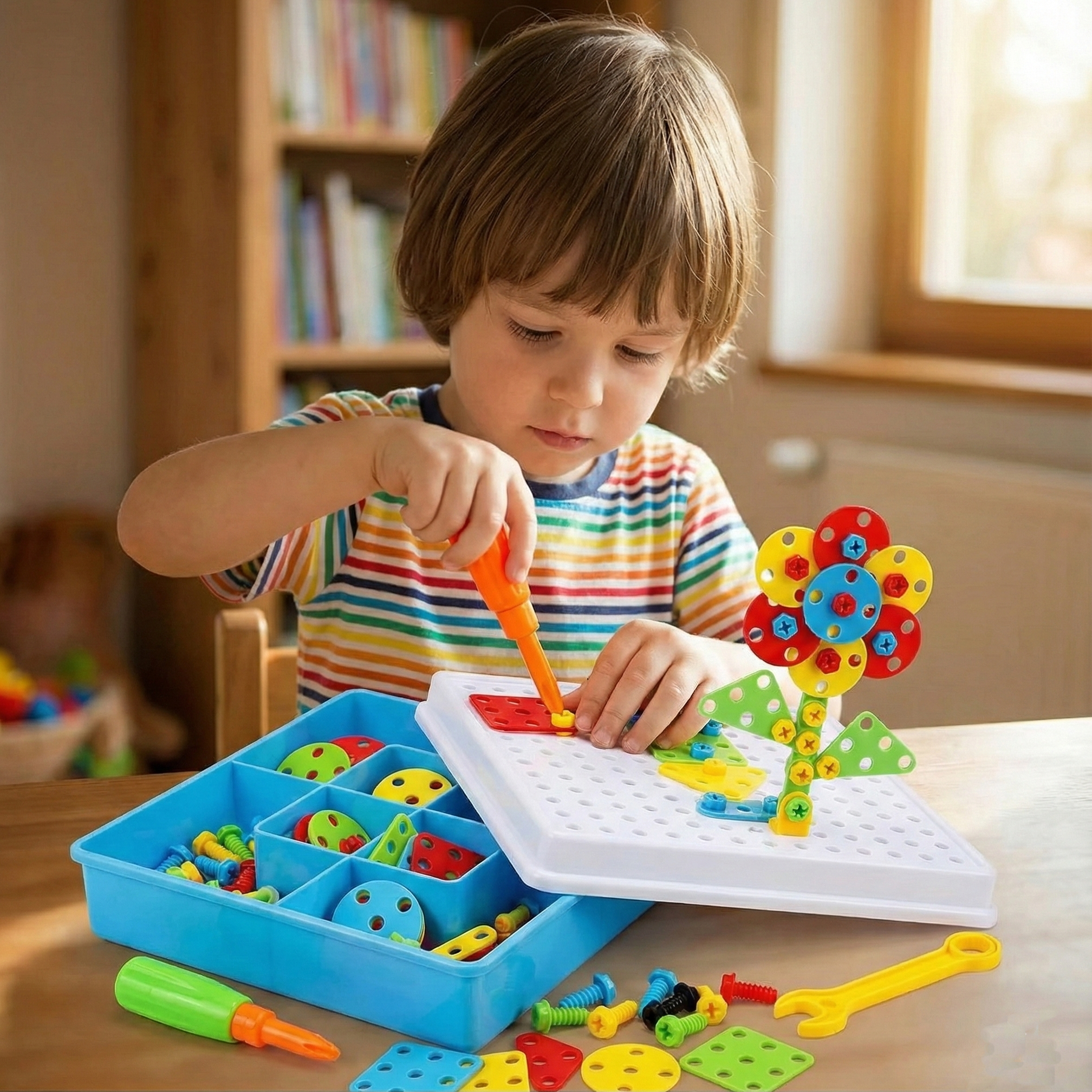 Incluye un destornillador funcional y piezas seguras, ideales para desarrollar habilidades motoras y creativas.