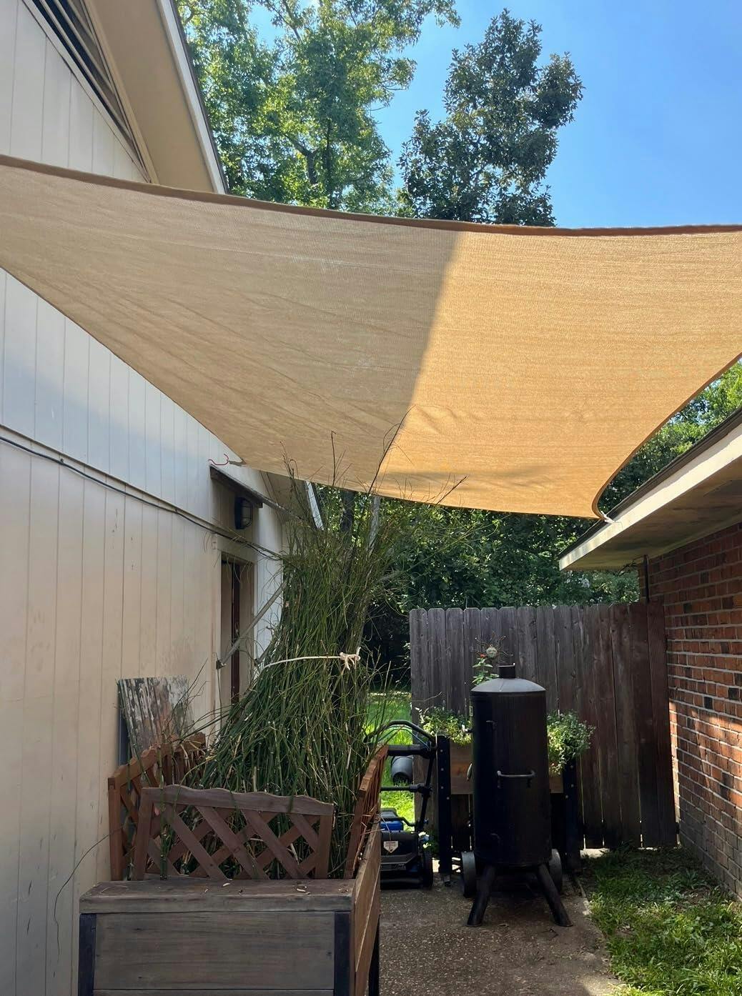 Este toldo tipo vela ofrece sombra fresca para jardín, patio, camping o terraza.