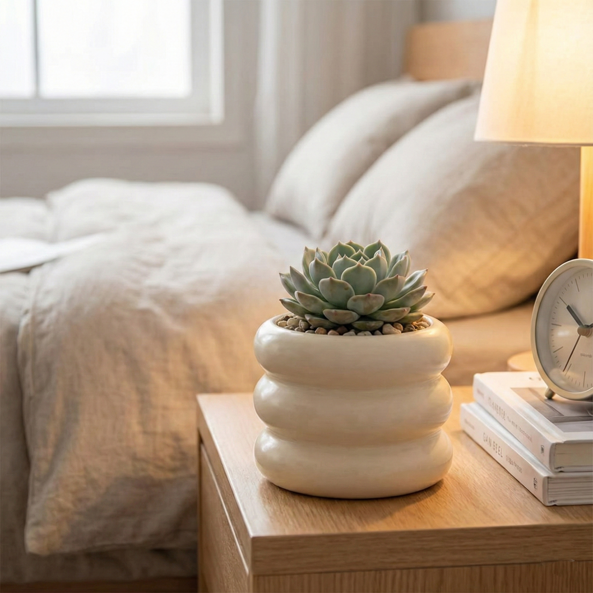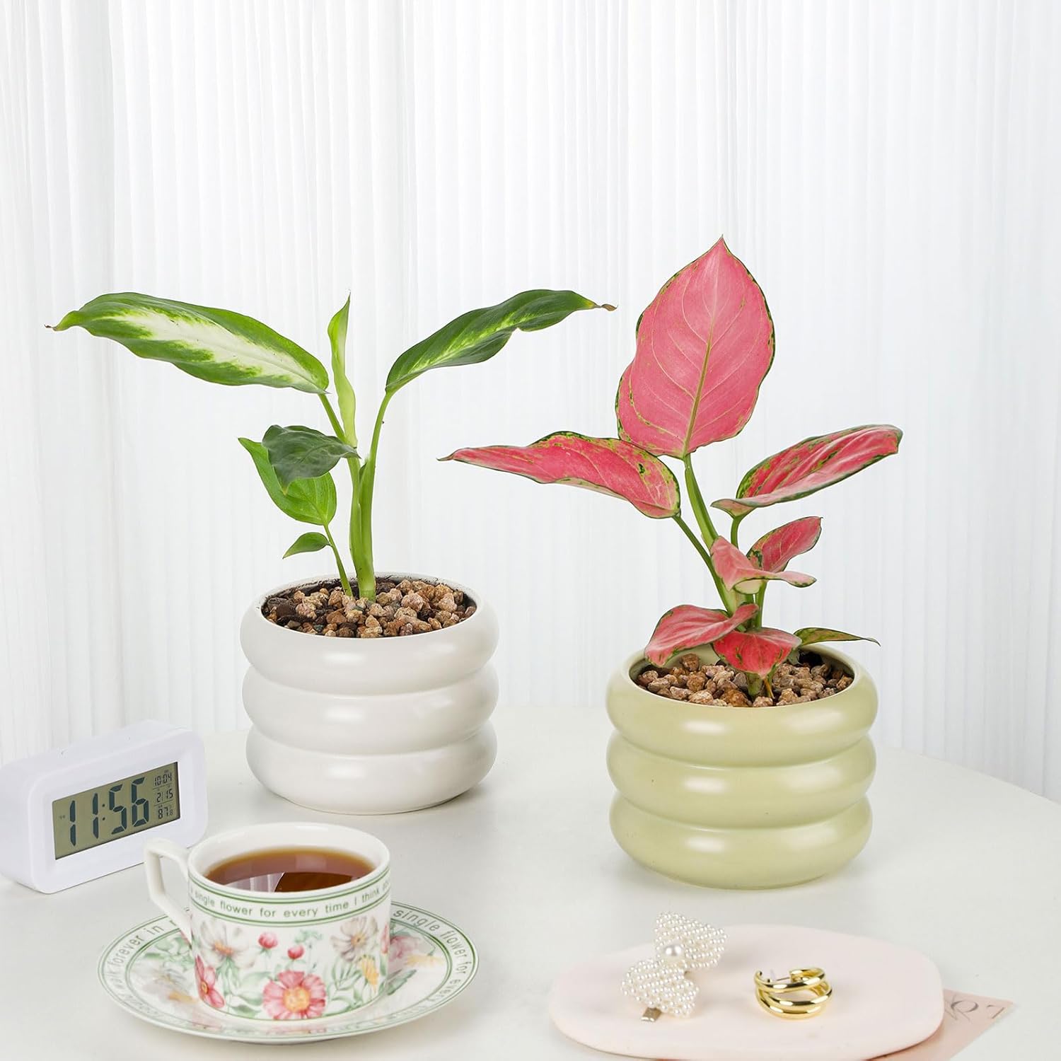 Fabricada en cerámica, ofrece una terminación prolija y un estilo moderno para realzar tus plantas.