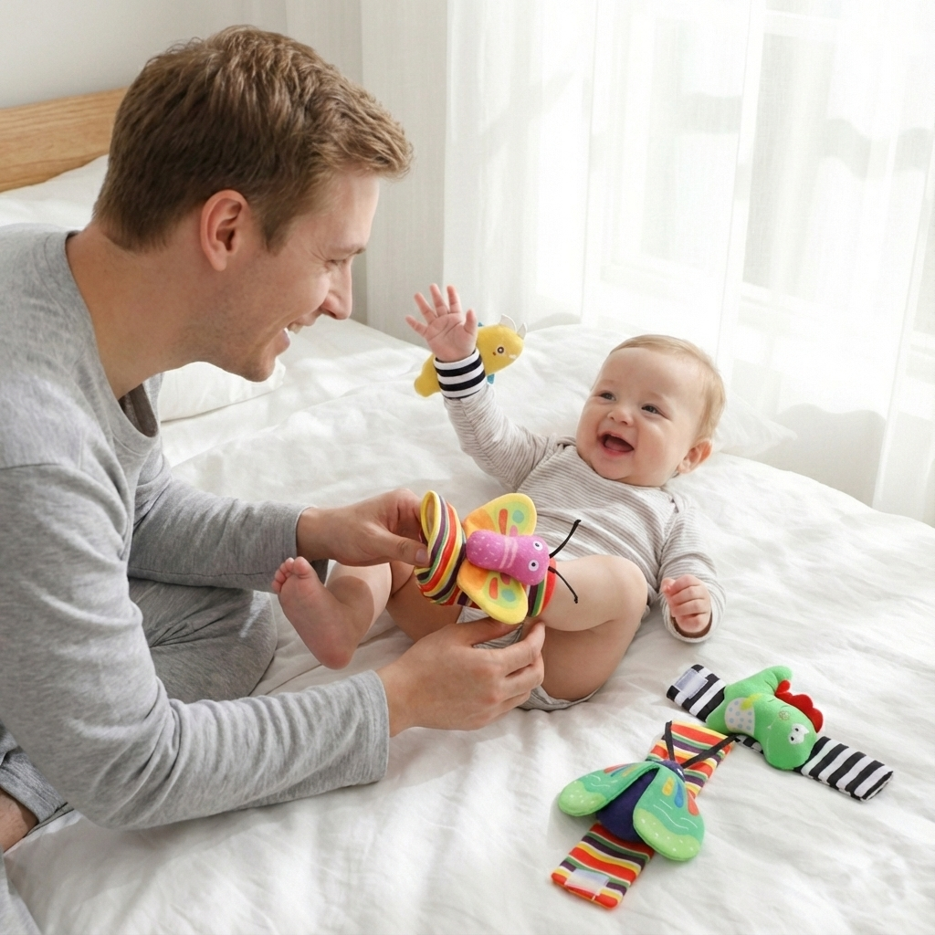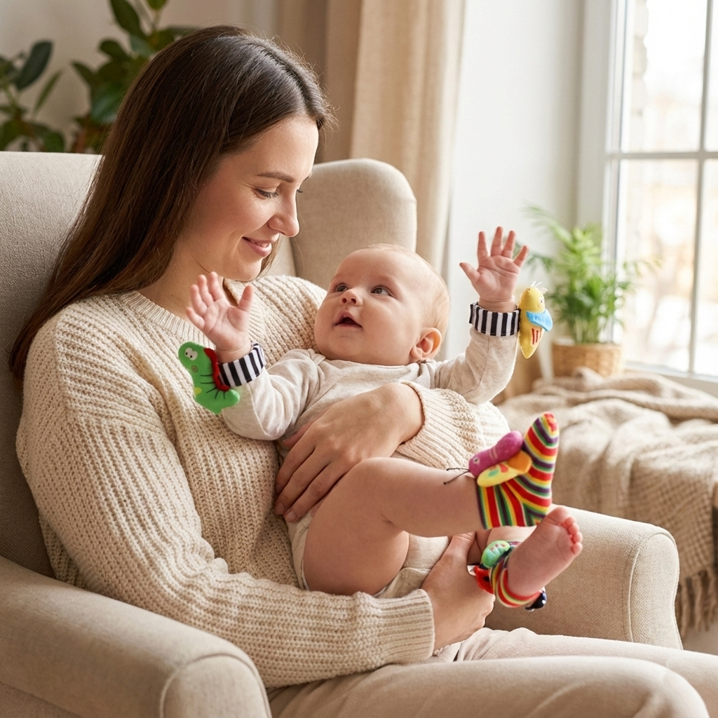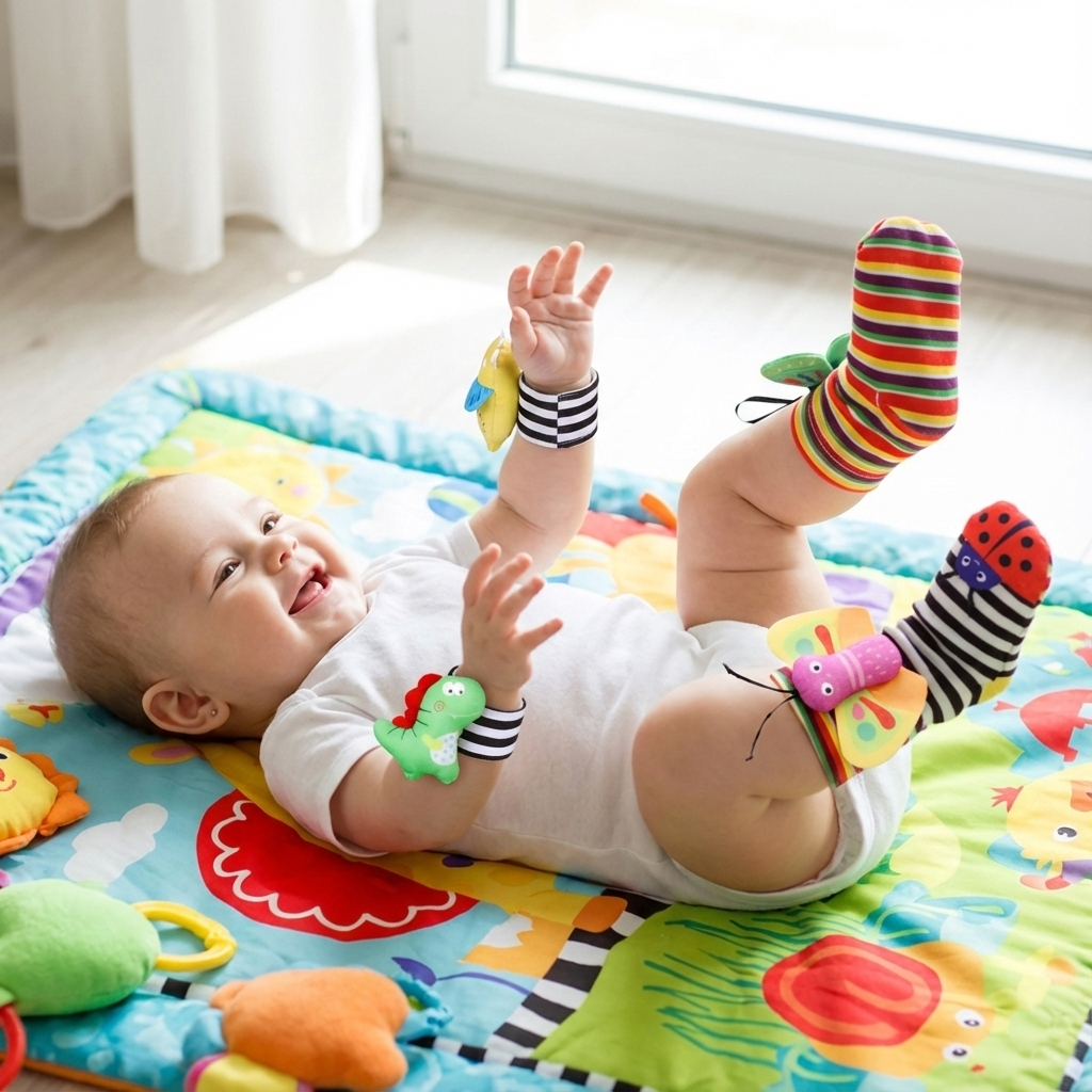Estas medias sensoriales con sonajero ayudan a estimular la atención y los movimientos del bebé de forma divertida.