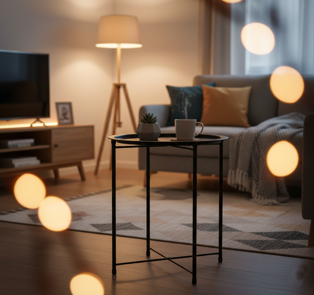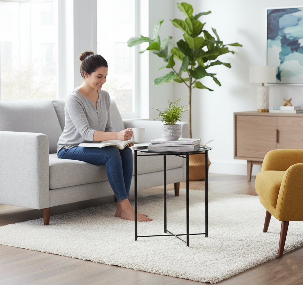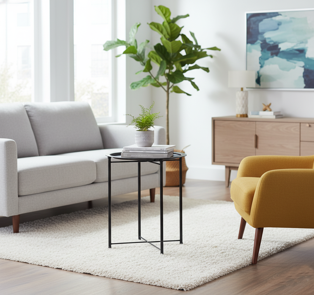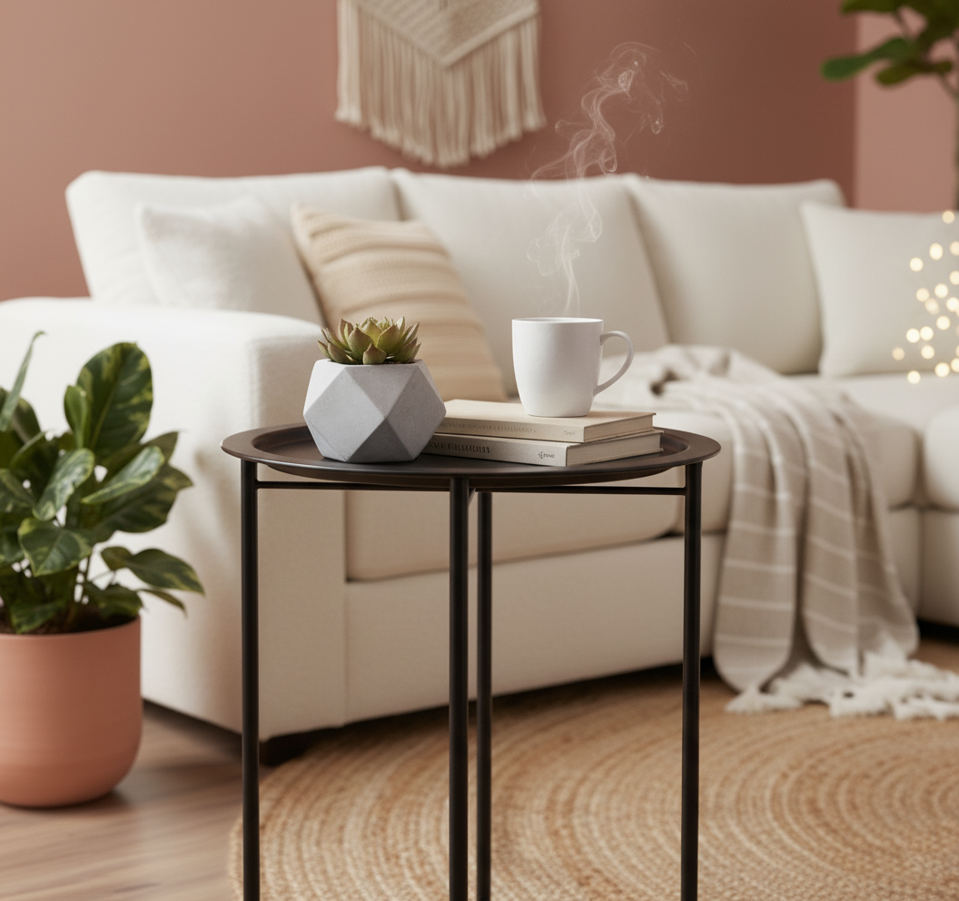 Ideal para apoyar decoraciones, bebidas o libros. Se adapta a cualquier ambiente moderno.