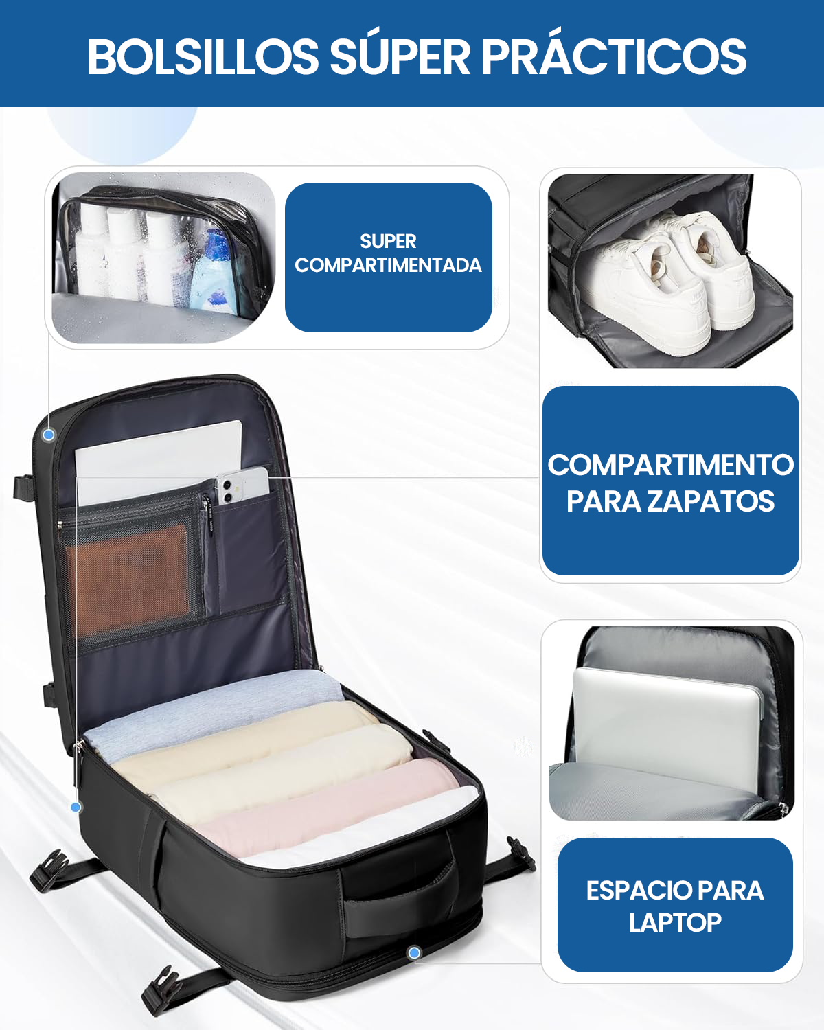 Con nuestra Mochila Impermeable Multifuncional Super Compartimentada.