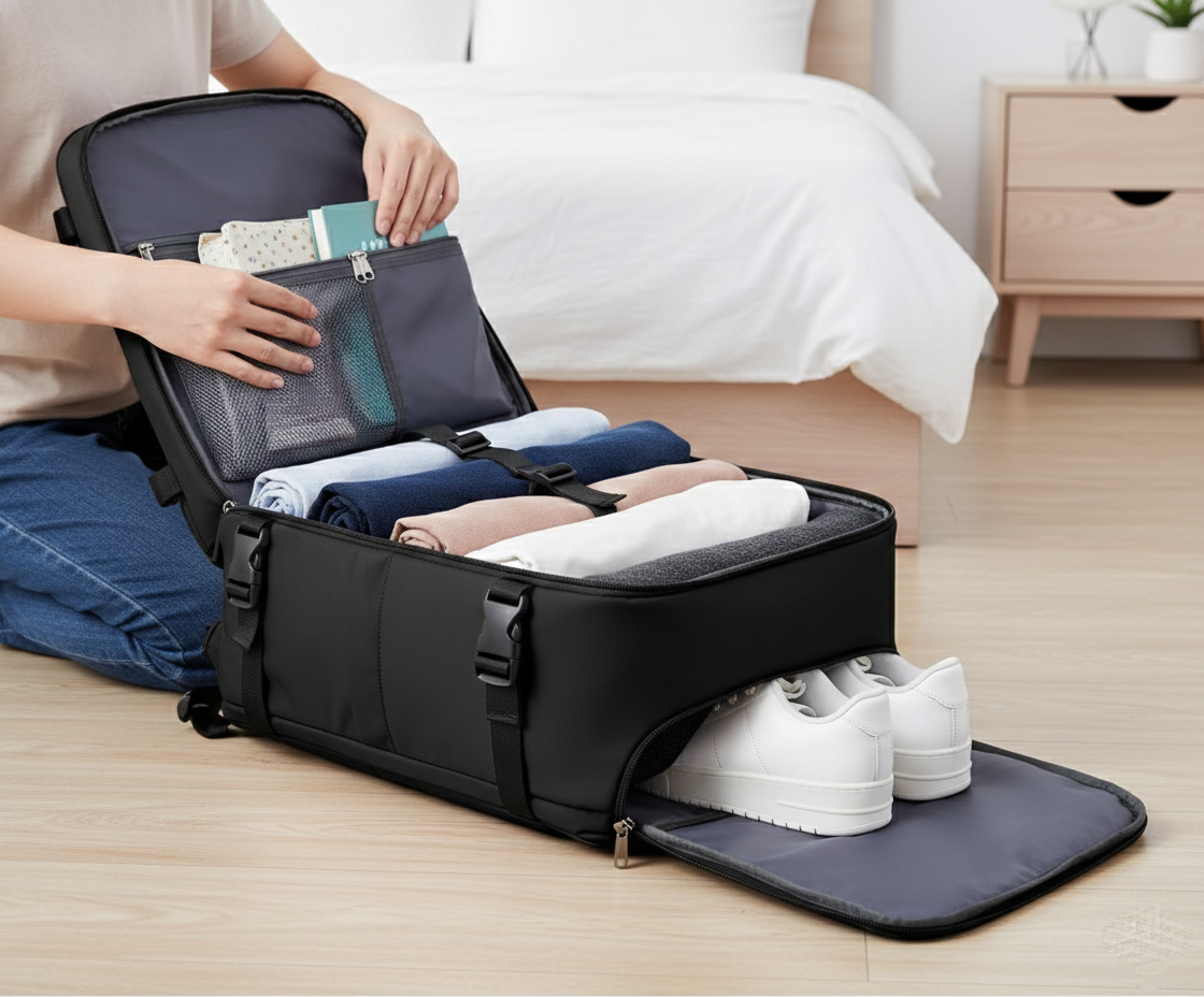 Es perfecta para llevar todo lo que necesitas de forma organizada y segura.