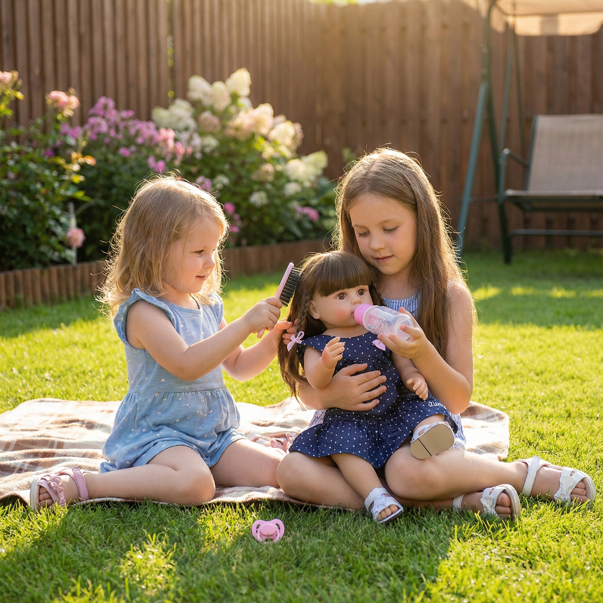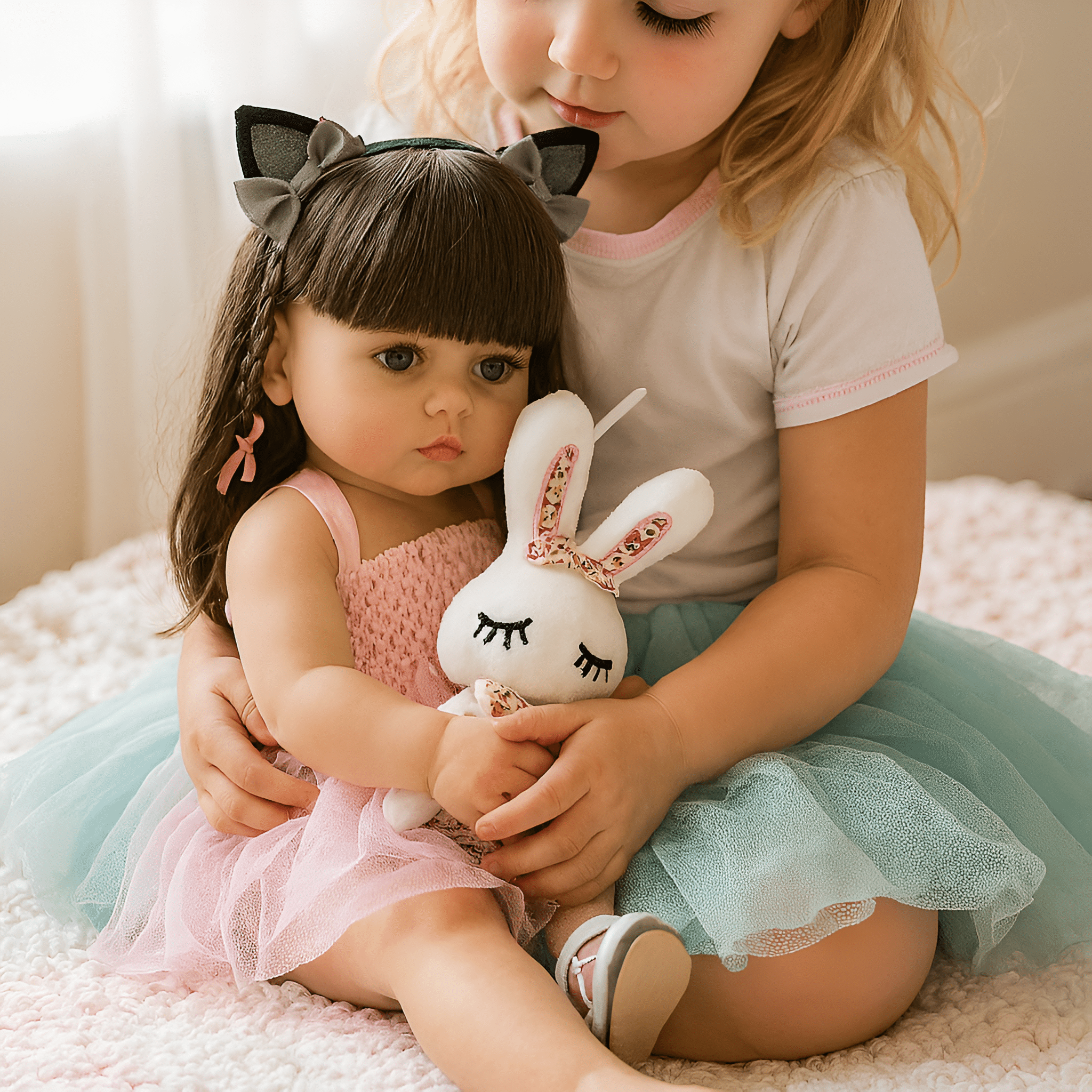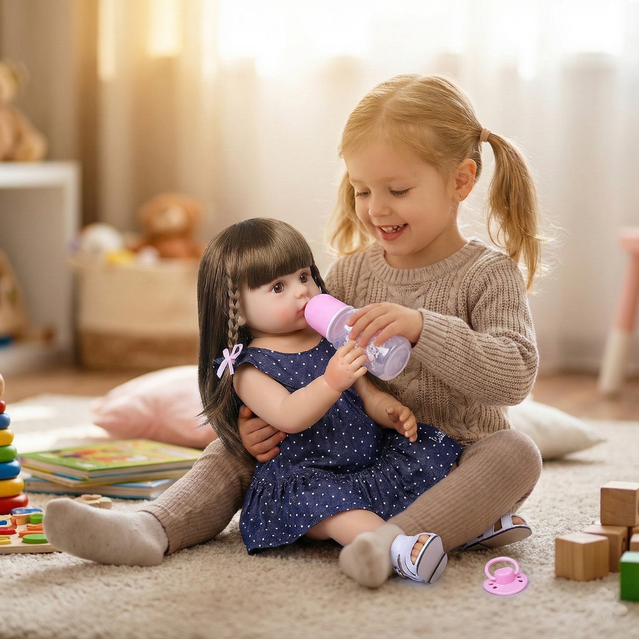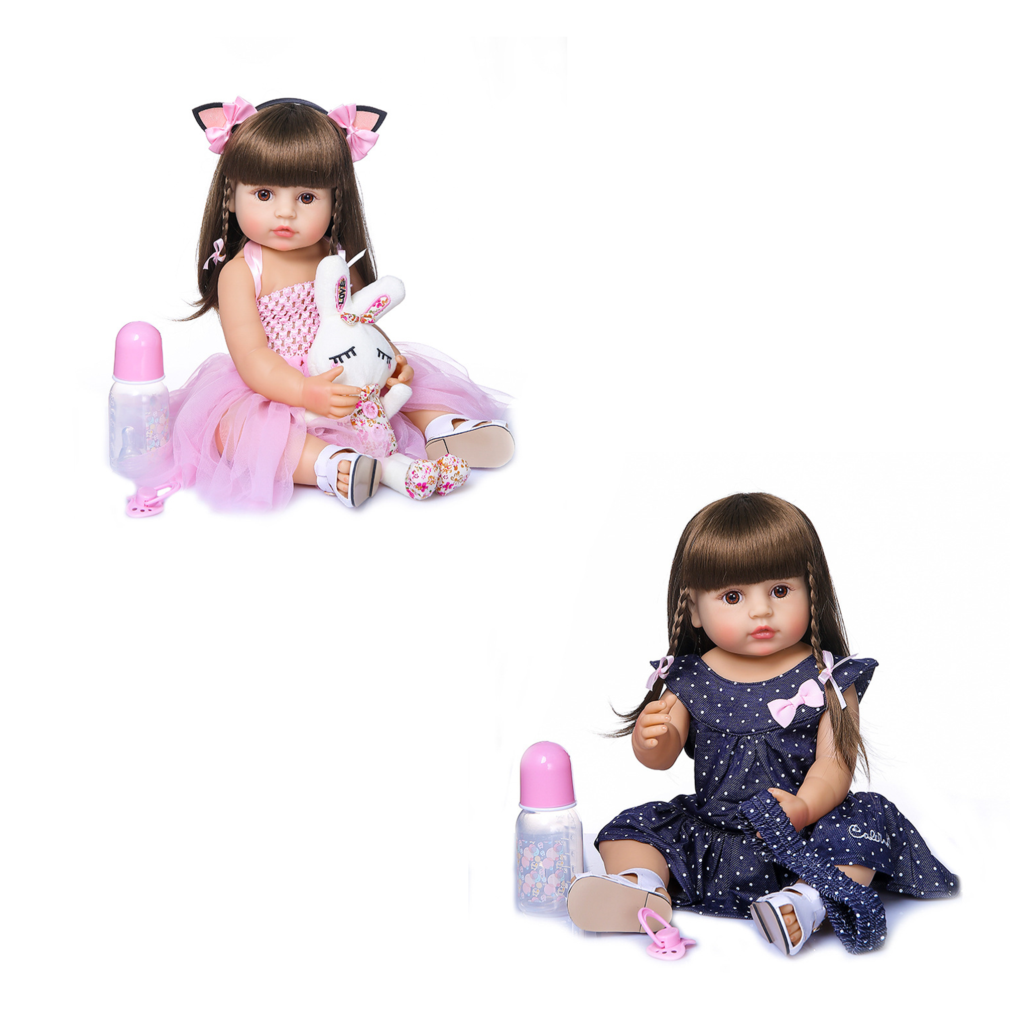 Esta muñeca de bebé realista viene con ropa de verano puesta y su peluche para jugar sin parar.