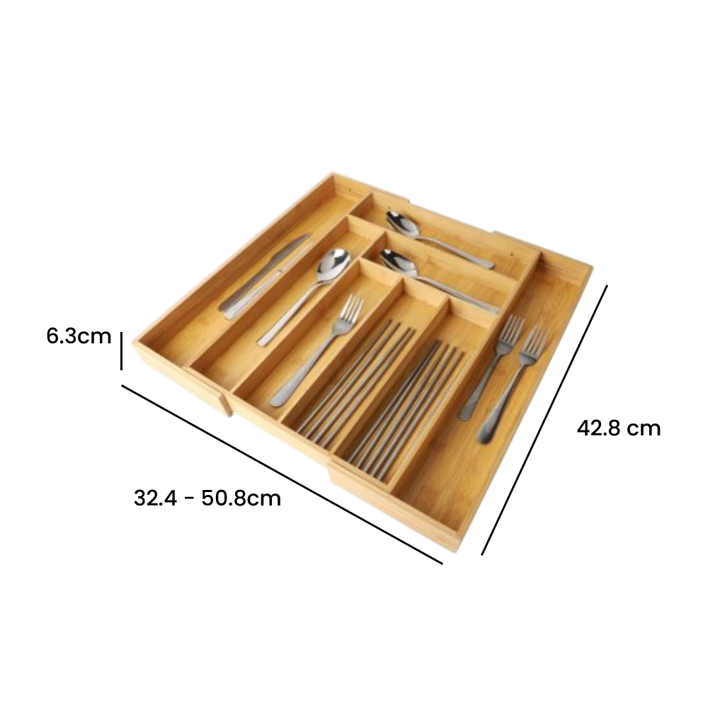 Organizador extensible de bambú, perfecto para cubiertos, útiles de cocina o incluso material escolar.