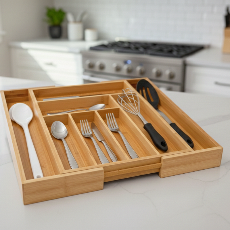 Organizador Extensible de Bambú Útiles y Cubiertos