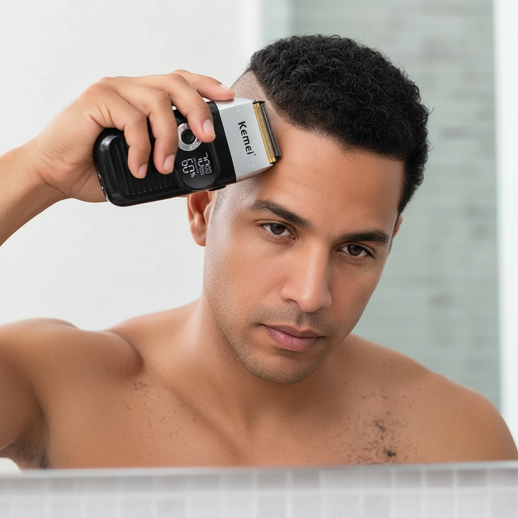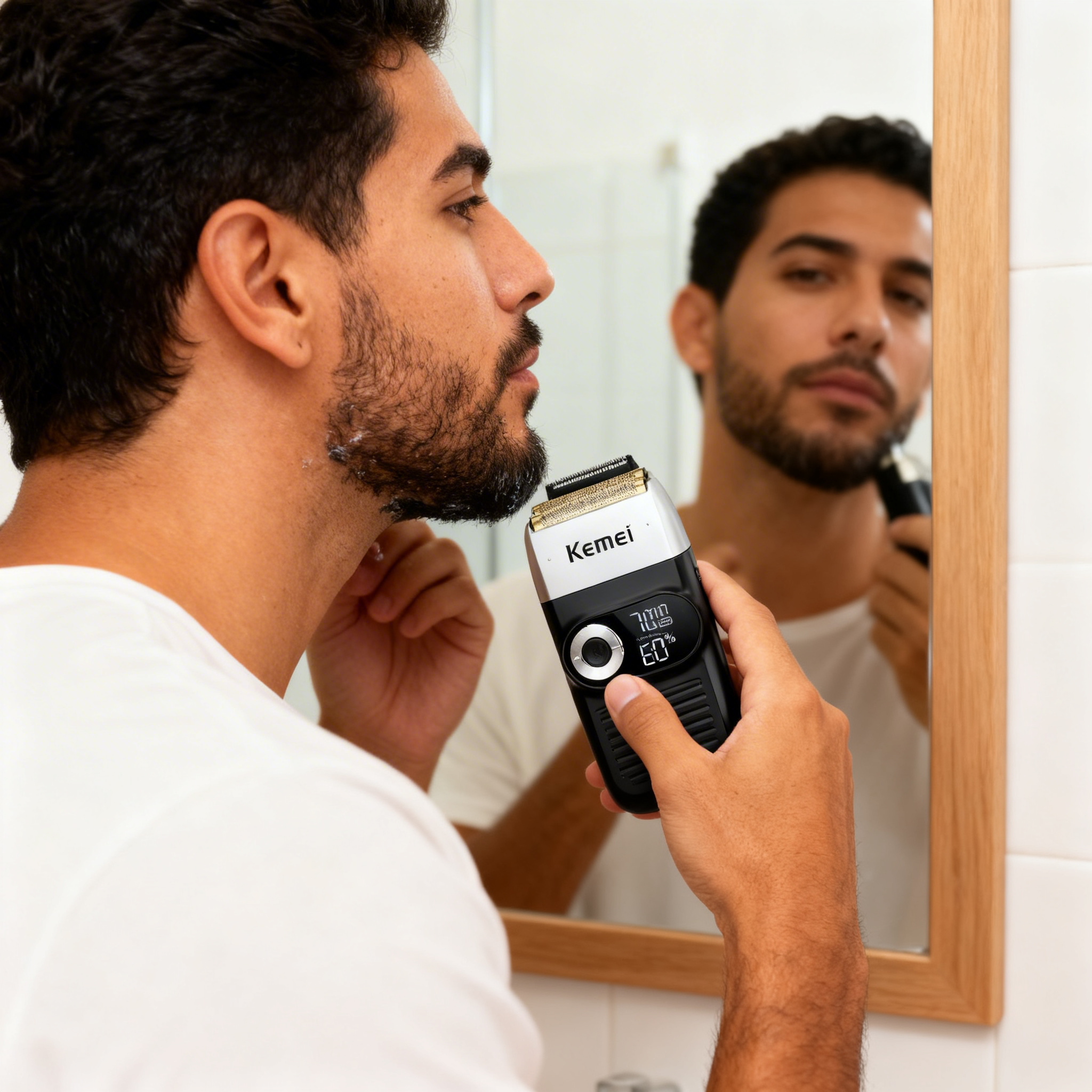 Descubrí la rasuradora KEMEI de alta calidad con accesorios incluidos y práctico bolso de viaje.