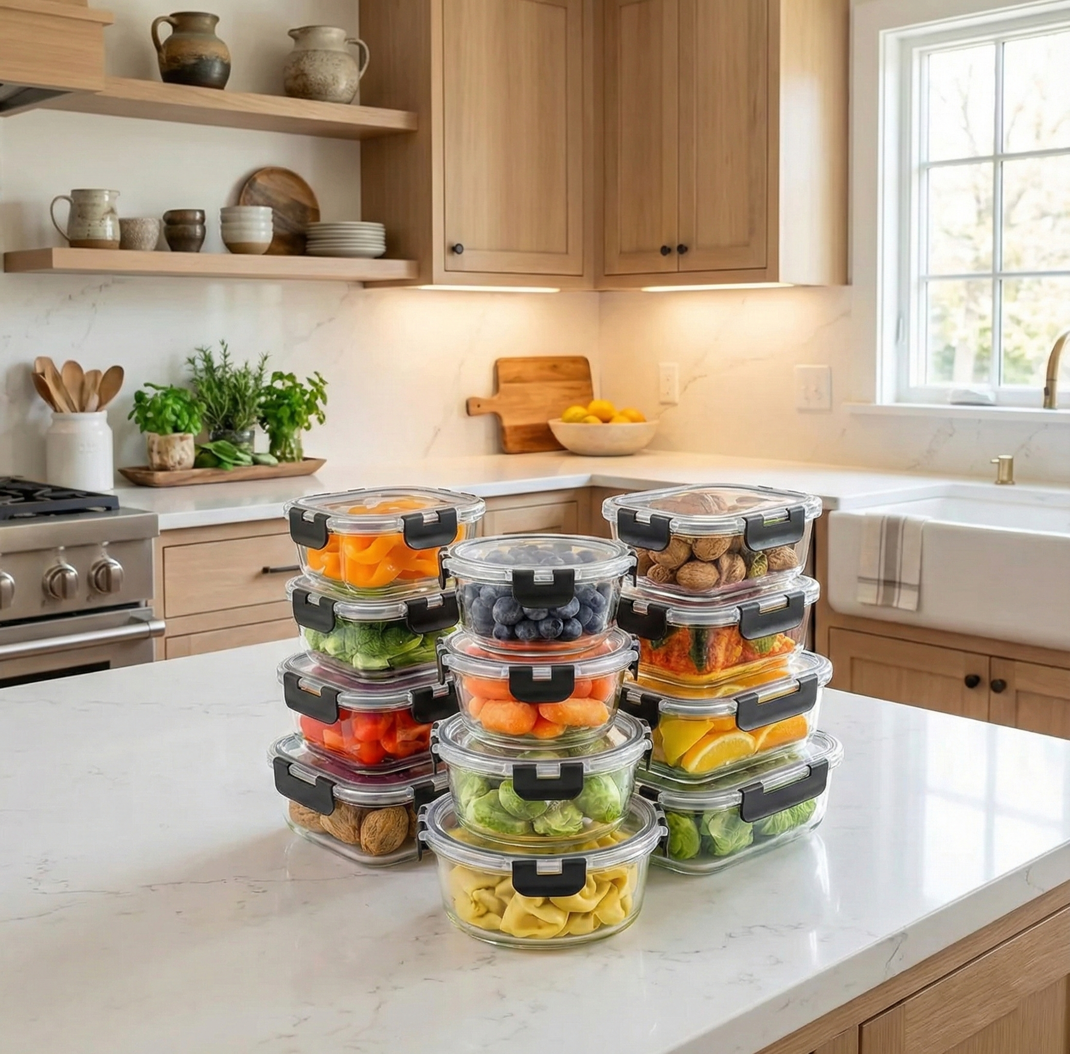 Set de 12 tuppers de vidrio herméticos, calidad premium para tu cocina.