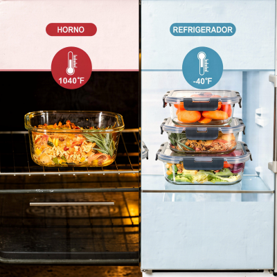 Medidas (rectangulares): 355 ml (10.6 × 14 cm), 620 ml (17 × 13 cm), 1035 ml (20 × 15 cm)