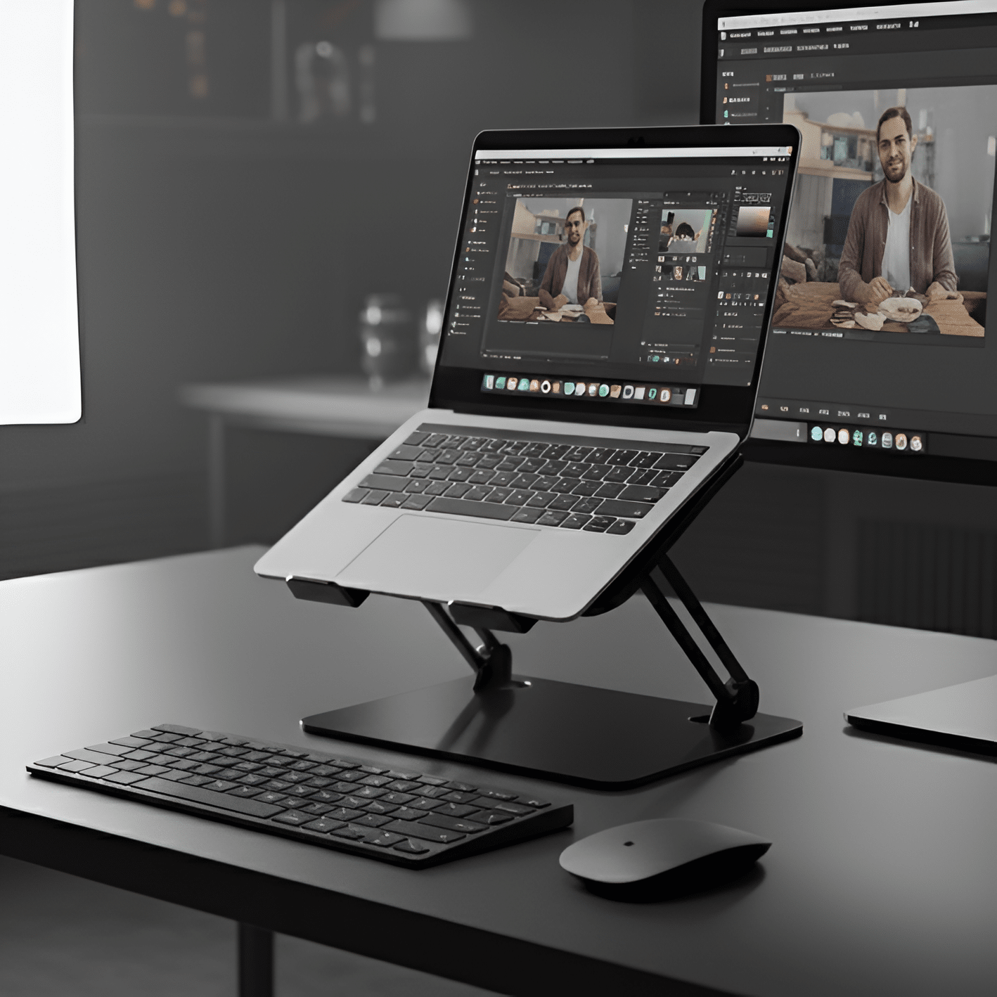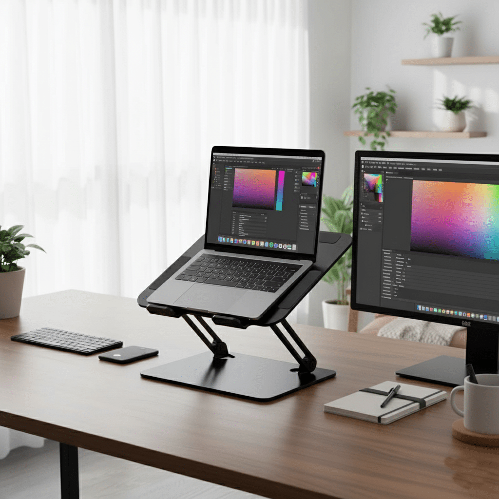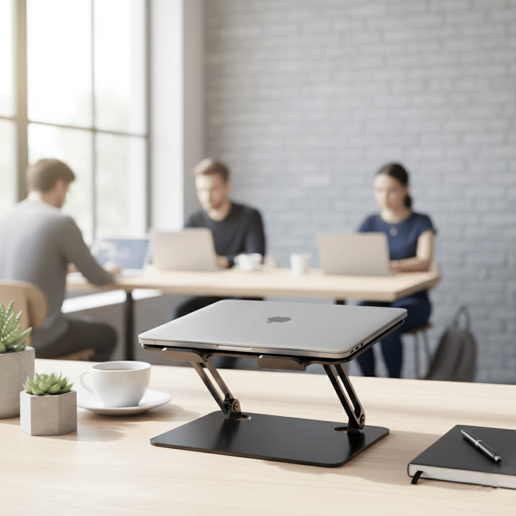 Soporte para notebook de metal resistente. Ideal para trabajar con mayor comodidad y seguridad.