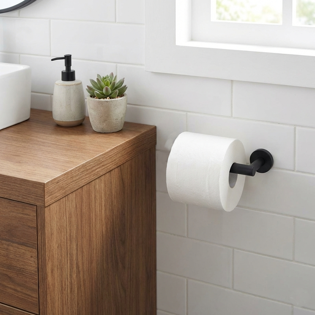 Este soporte para papel higiénico es ideal para mantener el baño organizado, con un diseño práctico que facilita el uso diario.