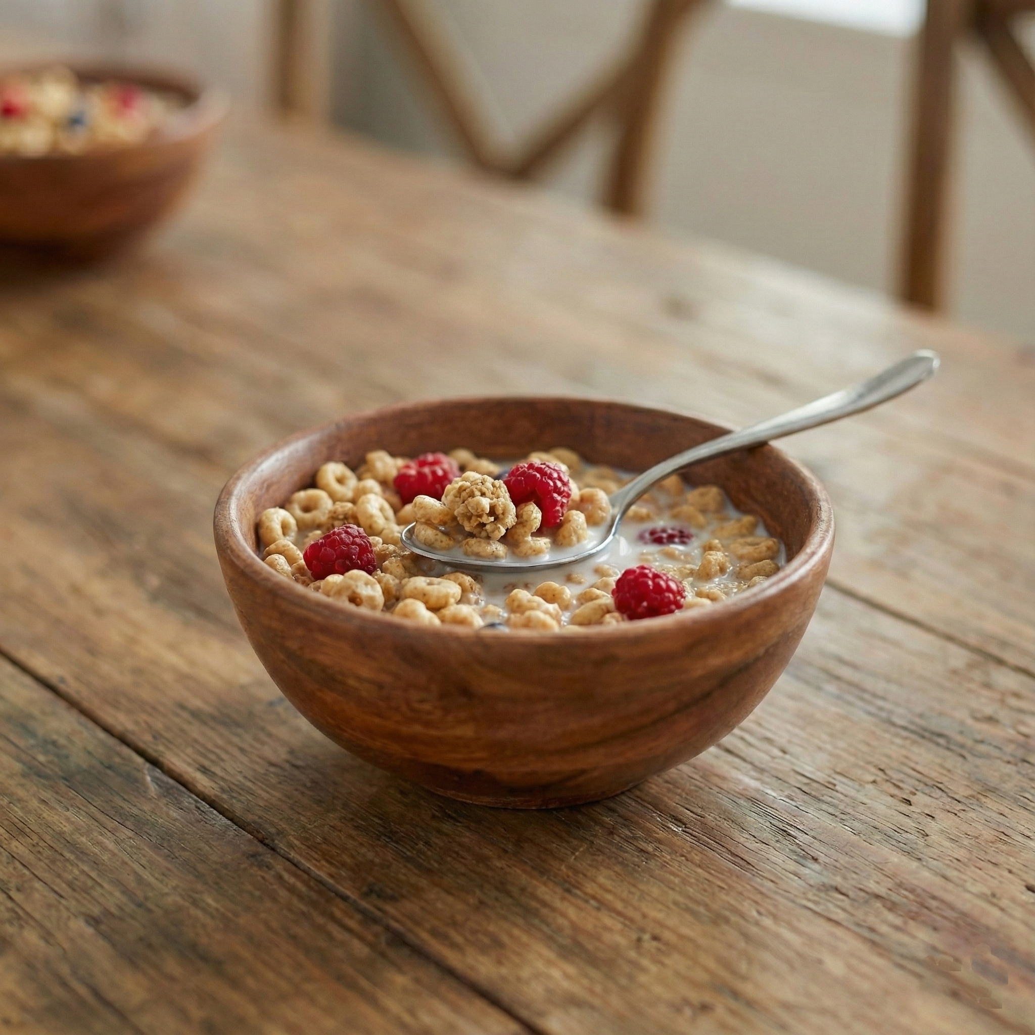 Bowl de madera ideal para ensaladas, cereales o snacks con un toque rústico y cálido.